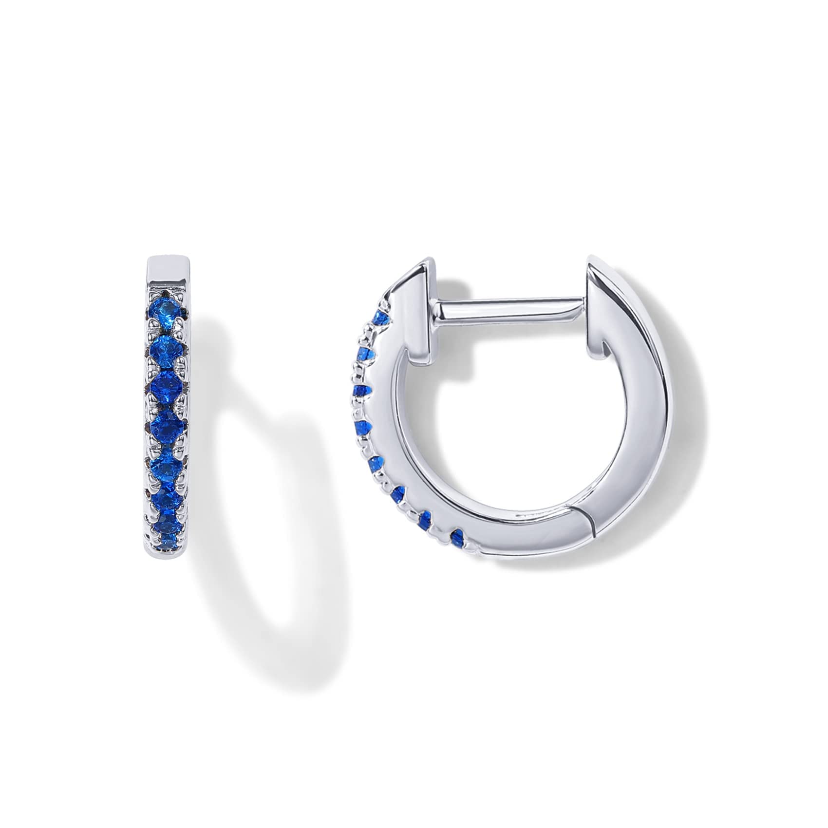 At just under 1/2" in diameter, our fun, colorful white gold huggies are a perfect way to level up your ear stack game and can be worn in your earlobe, cartilage, helix, and more. These Rhodium plated huggies for women feature Solid 925 sterling silver posts and high quality spinel blue AAAAA pave CZ for long lasting, everyday wear. OUR SATISFACTION PROMISE: Your happiness is our number one priority. If you're not loving your product, let us know within 60 days so we can make it right! To get in touch, email or chat with us - a member of our team will be happy to help. SUSTAINABILITY: PAVOI is dedicated to sustainability throughout our entire product cycle. Our jewelry is made from 100% recycled materials and we package in 99% recycled materials. We work to reduce our carbon emissions and offset plastic consumption by removing 275,000 bottles from oceans annually. We are committed to maintaining a business that minimizes our environmental impact. PROUDLY AMERICAN-OWNED If there is one trend that you Need to jump on the bandwagon for, it’s chunky earrings. These earrings are so perfectly thick, beautiful, and everything you need in a earring. Pop these on with absolutely anything and completely transform your look. We're all about making quality, sustainable jewelry that you can wear every day.