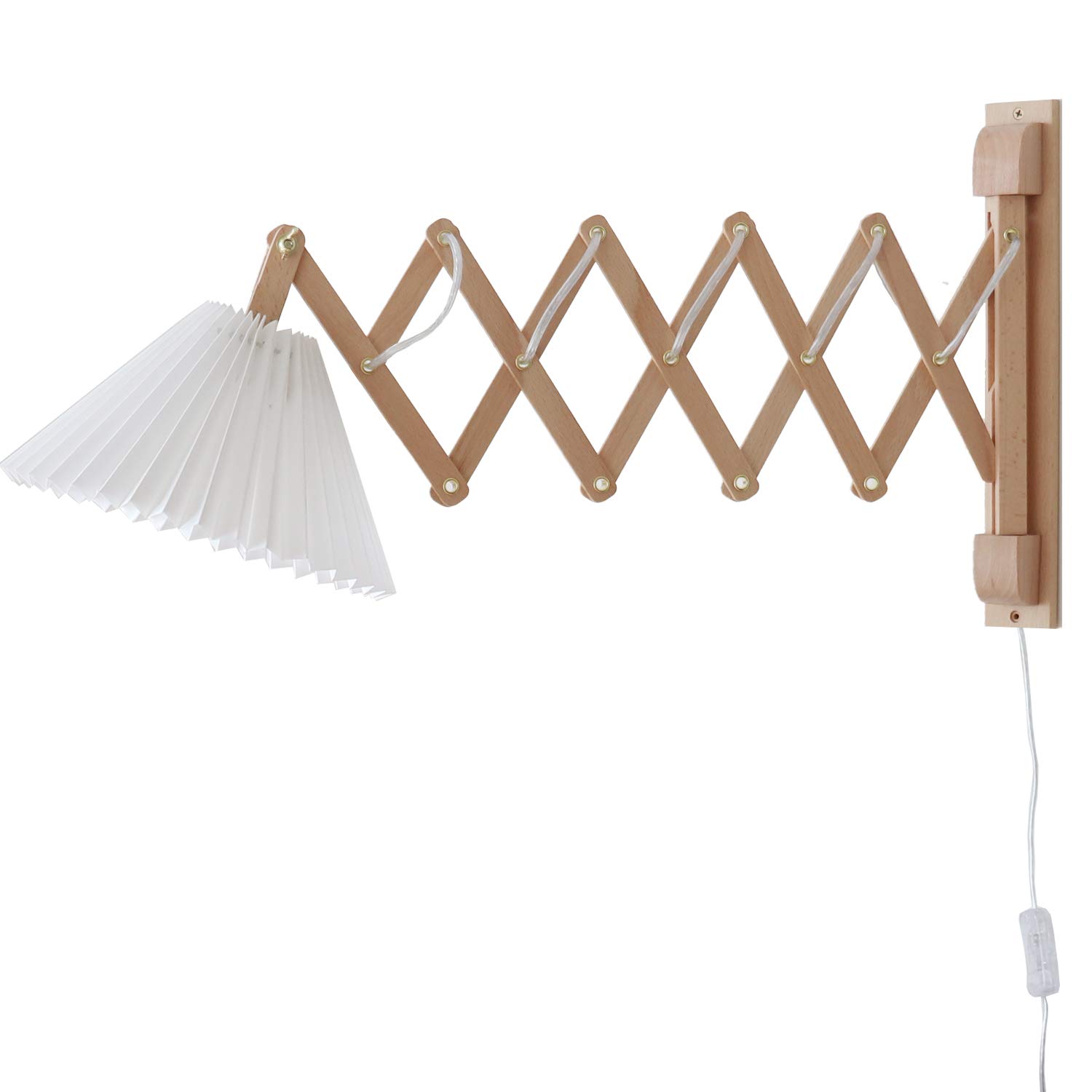 【PERFECT FOR ANY ROOM】 Wall Lamp shade size:6.3”(H) x 9”(W),plate size:13.7” x 2”, made of Hard beech and foldable PVC material, the light fixtures are well-made, anti-rust and won't fade, multi rotation design of plug in wall lamp make a style statement in living room, office, bedroom ,study, den, college dorm 【ADJUSTABLE & RETRACTABLE】The max length extension from wall is 30 inches with 180° rotatable lamp Arm and 180° rotatable lamp head, Tail cable 8.2 ft with two-prong plug. The wall lighting fixtures can give off cozy and soft light, is able to brighten up a room by itself, allowing you to customize lighting effects 【PERFECT GIFT】 Comes with gift Package, These charming arm wall light is great gift of lighting accessories for Thanksgiving day, Christmas, New year, Birthday, Housewarming Party 【BULB REQUIREMENTS】 NON-DIMMABLE & BULB IS NOT INCLUDED, Compatible with variety of E26 bulbs type such as Edison, incandescent, halogen, LED or CFL, the designer recommends using small bulbs such as Edison G45, G50, G60.Max Wattage:60W ,Voltage:110-120V,The wall sconces with knob switch directly controls the On/Off, convenient for use 【EASY INSTALL】 Wall light with all necessary hardware and considerate instruction included for very easy to install