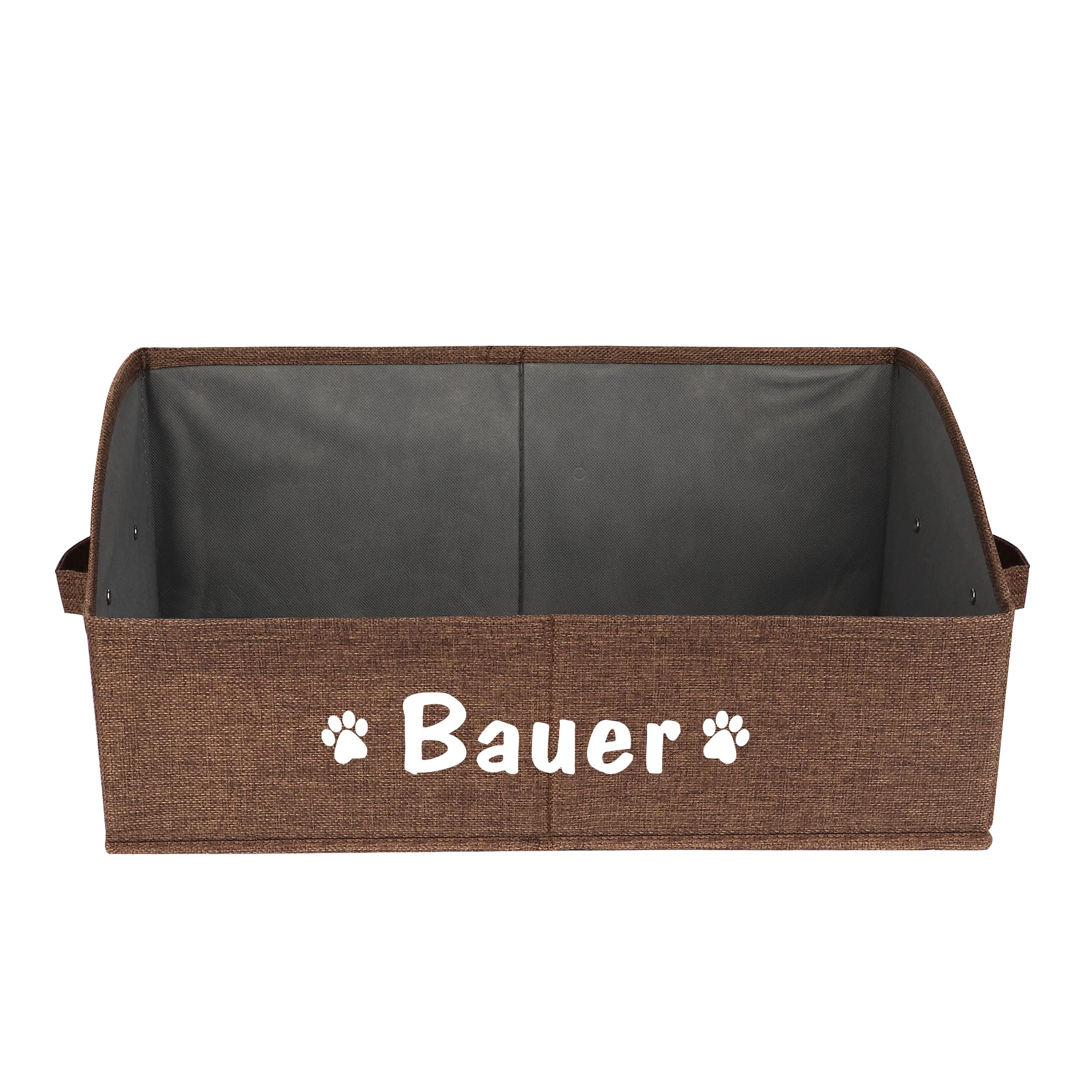 THE SIZE--19.5 (L) x 11 (W) x 8(H) inches dog toy bin,Enough space is convenient for dividing how to put pet supplies, whether it is a leash collar for walking the dog, a blanket that is used in all seasons, and the cotton-padded clothes that may be used in the upcoming winter, there is enough space to put it inside COTTON AND LINEN MATERIAL/ NON-WOVEN FABRIC---The outer layer is made of cotton and linen, which is dirt-resistant and not easy to wrinkle. The inner layer is made of non-woven fabric, which is soft and light, and has good ductility. It can be placed on a large number of objects. It is suitable for many scenes, such as indoor, living room, or outdoor dog house, so even the outdoor dog house can be used for a long time ELEGANT HOME STYLE---Using elegant home style, if placed indoors, it can fit your home well, and considering the practicality, the foldable function is added. When not in use, just follow our folding instructions. Easily store the pet storage box without taking up a lot of your storage space DAILY MAINTENANCE TIPS---Taking into account the normal wear and tear of daily use, the product becomes dirty. In the cleaning method, we recommend using a wet towel to wipe it. If there is oil stains, you can dip a certain cleaning solution to clean it, and then place it in a cool place to dry. If you have any dissatisfaction or questions during the use of the product, please let us know in time, and we will respond to you within 24 hours EASY TO USE & CLEAN - Compared to rope handles(may look like toys),two cutout handles is safer for those dogs like to chew. Wipe clean with a damp sponge or cloth for long-lasting use