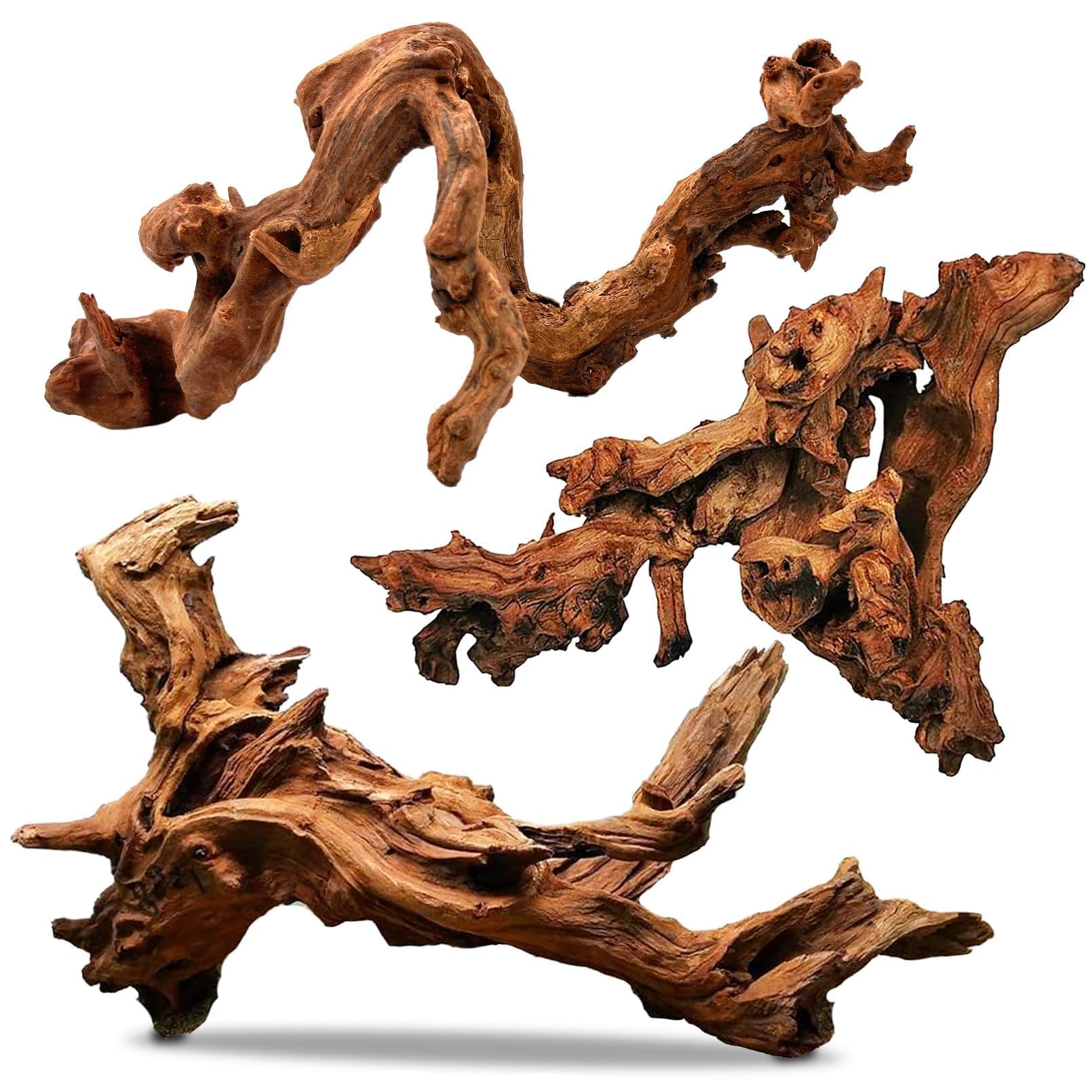 Distinctive Shape Drift Wood: Each piece of aquarium driftwood has a distinctive shape natural beauty and character. Each piece is unique, providing a constant source of inspiration for your creativity. Our driftwood branches are the perfect fish tank decorations Multi-Scenario Application: Each piece is 7-11 inches in length, not just for fish tank accessories, but can also be used to create moss trees in a fish tank, and also can be used as reptile decor, adding a fun dress-up to your tank Good Quality Mopani Wood for Aquarium: PINVNBY reptile wood is carefully selected manually and can be used underwater or in a drought environment for a long time. Our driftwood for aquarium is sourced from natural materials, that are durable and long-lasting Pretreat Before Use: To ensure the natural coral driftwood has a better sinkable effect, you’d better pretreat the natural large reptile wood before you put the driftwood into the water Our driftwood branches are the perfect aquarium decoration, bearded dragon tank accessories, reptile tank accessories. They mimic a natural growing environment for your fish and aquatic life, while also adding a fun dress-up to your tank Create a natural atmosphere: PINVNBY natural driftwood adds a touch of beauty to any aquatic or reptile tank. Whether you're in a tropical aquarium or a desert reptile habitat, our aquarium wood aquascaping will blend seamlessly and enhance the overall aesthetic appeal
