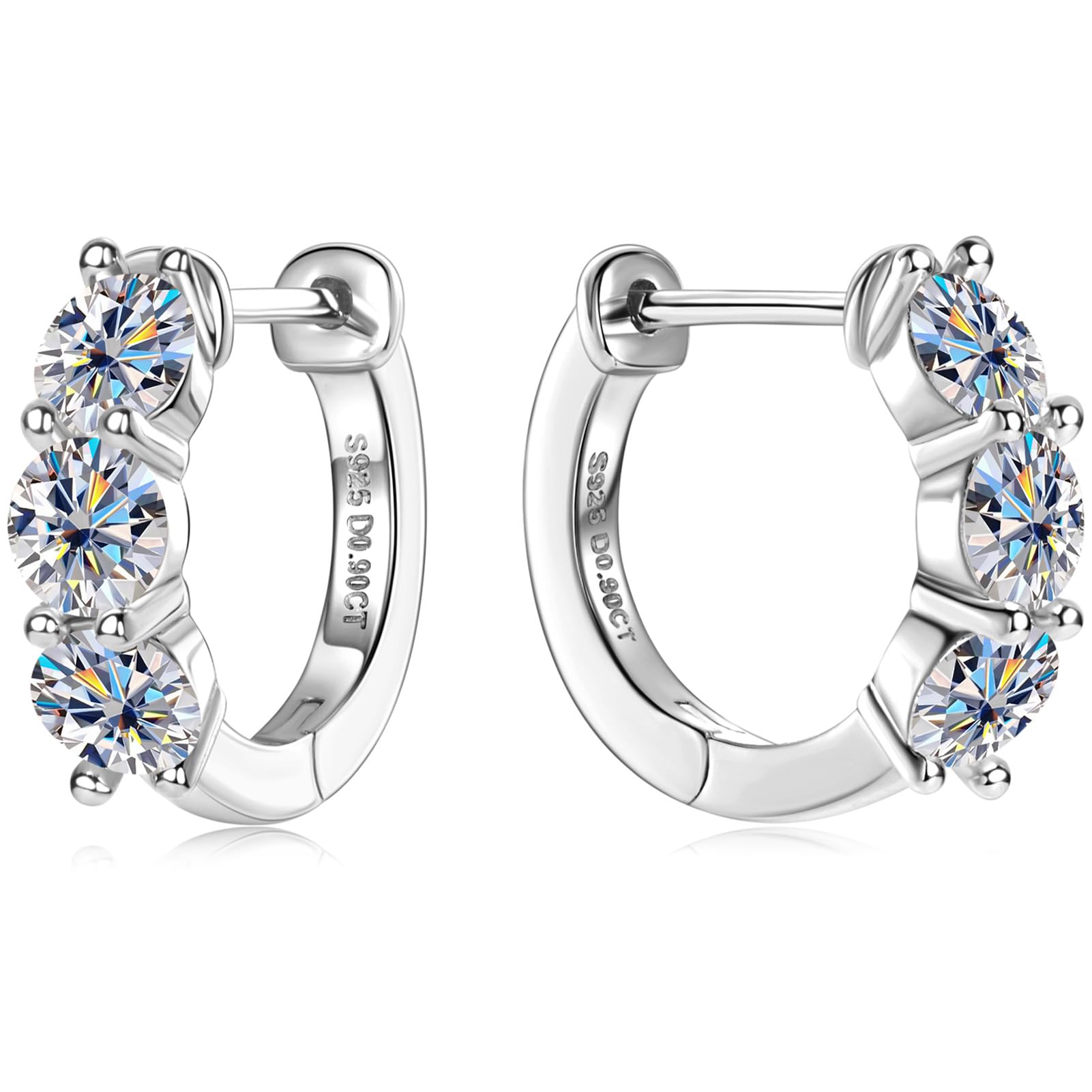 MEASUREMENTS - Our 3 stone moissanite hoop earrings are made with (6pcs)/4mm round moissanite, 1.2cttw per pair of the moissanite earrings. Total weight: about 2.8g. PROSTORY only select the best color scale moissanite, the stones will never lose their fire or brilliance. CLASSIC 3 STONE HOOP EARRINGS - The moissanite huggies earrings fit for every women, any occasion such as daily wearing, party, home, office and travel etc. It also fits for daily wearing home and office. We use hand made setting instead of wax setting, to ensure our stones are stronger and safer, make it look more beautiful and high-end outlook. GENUINE STERLING SILVER - This trendy 3 stone moissanite round hoop earrings is made of 925 sterling silver with S925 metal stamps and have passed strict quality checks. PROSTORY uses advanced plating technology, so our jewelry can maintain a longer gloss and not fade for at least one year. IDEAL FOR EVERYDAY WEAR - With its essential design, sparkleling 3-stone moissanite hoop earrings wears well whether you’re running errands, in the office or out with the women or men. EXCELLENT GIFT - For birthday, anniversary, holidays, stocking stuffers, graduation, Christmas, Valentine's Day, Mother's Day, Thank You or simply "Thinking of You". PROSTORY 3 stone moissanite hoop earrings is put in a very delicate jewelry box, including the GRA certificate. ABOUT PROSTORY JEWELRY