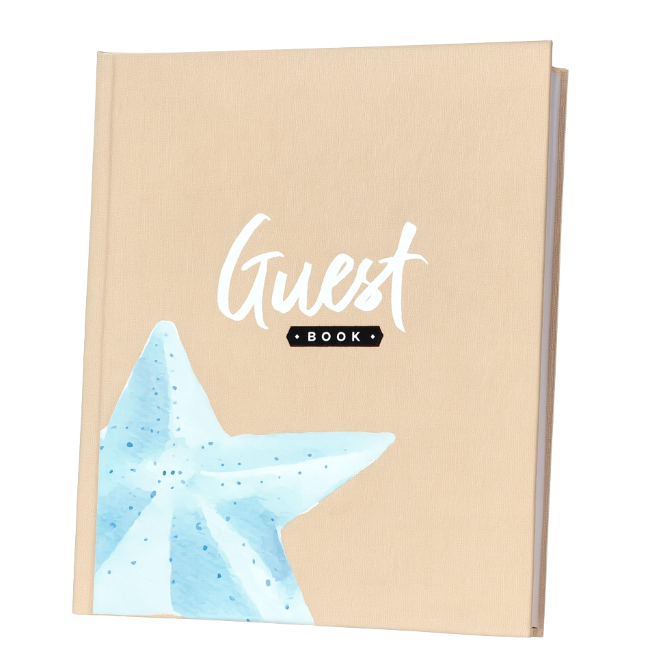 Use this Guest Book to gather feedback and comments from your guests, which can be used to improve the overall experience for future visitors. Provide a keepsake or memory for both you and your guests, as they can look back on their stay and see comments from other renters. This guest book features a textured linen hardcover with heat stamping and a ribbon page marker, in a flat-lay design for easy writing and reading. Creating a record of who has visited the location and from where, which can be useful for marketing purposes. Encouraging interaction and conversation among guests Size- 7.5x9 inches. - It is large enough to accommodate 120 different guest reviews and messages, without becoming too bulky or heavy. It is also small enough to be easily stored and displayed in a home The guest book has a capacity of 120 guest entries with 60 sheets printed front and back. The linen cover on this guest book is attractive and durable, adding a touch of elegance and texture to the book while providing protection for the pages inside. This elegant vacation home beach guest book is the perfect way to commemorate your guests' stay at your beach getaway. With a stylish linen cover, this guest book offers durability and a touch of luxury. Its 7.5x9 inch size makes it easy to handle and write in, and the 120 guest entries allow for plenty of space for your guests to leave their well wishes and memories. This guest book will serve as a cherished memento of their vacation and a reminder of their time spent at your beach home. Whether you're a homeowner, property manager, or vacation rental host, this guest book is a must-have for your beach vacation home.
