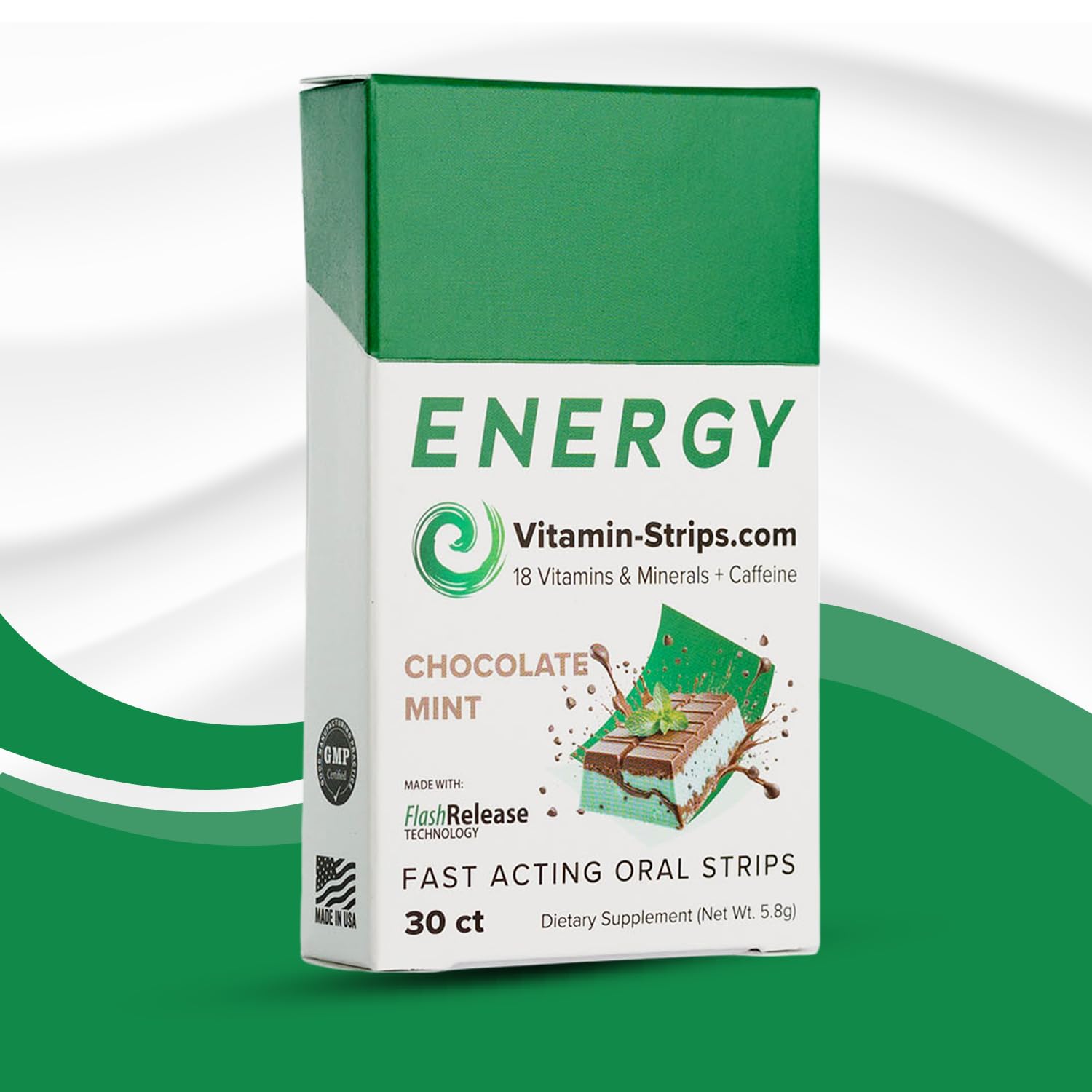 New! The "Healthiest Caffeine Choice" -How to reach your Peak Performance without the "Jitters"! Avoid a "flat performance" in whatever you are going to do. Customize your caffeine dosage level, at 30 mg per oral strip (cola level), to fit your performance needs and the 18 Vitamins and Minerals will give you a calm energy that will keep you "in the zone" without jitters or nervousness so you can perform at your highest level! We all know caffeine strips is a great energy source but can lead to cold and sweaty hands, body tightness, nerves and jitters, "choking in the clutch". Not ideal to perform at a high level in any sport or gaming activity. You have to be mentally focused and energized but calm and cool under pressure. The champions all have this calm ability in the clutch. Our Oral Vitamin-Strips with a unique blend of many B vitamins, E, D, A ,K and Zinc and many more will help you calm down and think clearly so your body can execute your game plan in whatever you do and do it at your Maximum Peak Level. The only way to reach "in the zone" is to have a sharp and focused mind and a calm, relaxed body. Vitamin-strips are the only caffeine choice that can do this. All other caffeine choices do not offer enough vitamins and minerals to calm the caffeine hit down. LONG-LASTING WELLNESS: Multivitamin strips gradually absorb 18 essential vitamins and minerals over 3–4 hours, providing a sustained sense of well-being and vitality. Join our satisfied users who attest to a lasting, pleasurable feeling of wellness throughout the day. UNPARALLELED EXPERIENCE: Unlike conventional caffeine sources or oral strips, our sugar-free breath strips offer a distinctive and holistic wellness experience. Embrace a new standard of health and vitality with our 100% natural and wholesome formula, sugar-free strips. 100% SATISFACTION: We're confident you'll "feel good" with every vitamin strip. If you still need more, we offer a 30-day money-back assurity. Invest in your well-being risk-free and discover the difference with our dissolving strips today. Experience the Ultimate Boost with Chocolate Mint Flavor Vitamin-Strips! Introducing a breakthrough in energy and focus enhancement with our innovative technology and It Includes 30 mg of Caffeine per strip. Our Chocolate Mint Flavor oral strips combine refreshing mint with a delightful chocolate aftertaste, masking any bitterness for a lovely experience. Feel the difference as our unique formula, enriched with 18 essential vitamins and minerals, boost strips boost energy and focus, followed by a lasting sense of wellness throughout the day. Features and BenefitsEnjoy the refreshing mint flavor followed by a subtle chocolate finish, masking any bitterness associated with caffeine.Experience a blend of caffeine and essential nutrients that nourish your body, caffeine strips providing calm energy and a lasting sense of well-being. Our energy tongue strips come in easy-to-use peel-away foil wraps, packaged in a convenient flip-top box for safe storage and on-the-go use. Package Includes: 1 X Vitamin-Strips Fast Acting Oral Strips (30 Count)