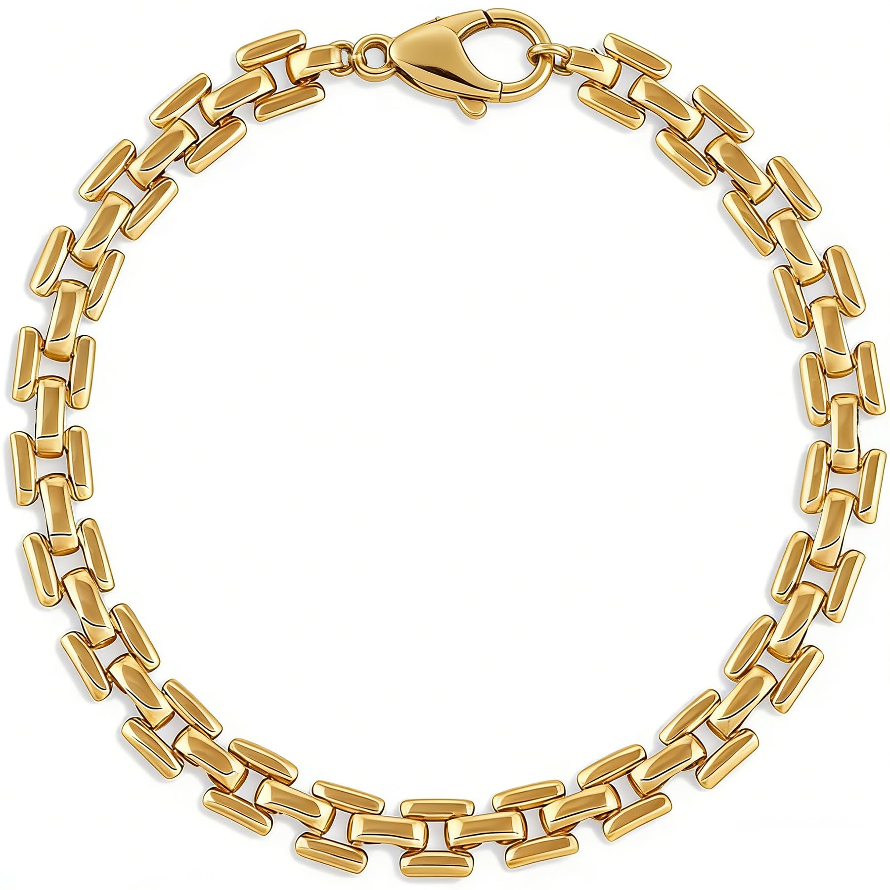 Fashionable and novel: incorporating the design elements of watch bands, different from traditional bracelets, giving a unique sense of fashion, suitable for men to wear to show handsome and tough, but also suitable for women to wear to show their individuality and spontaneity Elegant Design: This stunning gold link bracelet exudes sophistication and timeless appeal, making it the perfect addition to any woman's jewelry collection. Its versatile design effortlessly complements both casual and formal outfits, adding a touch of elegance to every look Premium Quality: Crafted from high-quality gold, this bracelet for women boasts durability and shine that lasts. The sleek, polished links offer a smooth feel, while the secure clasp ensures a comfortable fit all day long. Ideal for those who appreciate fine craftsmanship and luxury Perfect for Stacking: Add a layer of style to your wrist with this gold bracelet stack. Whether worn alone or paired with other gold bracelets, this link bracelet enhances your overall wristwear, creating a bold, chic look that’s perfect for layering A Thoughtful Gift: Looking for a gift for a special woman in your life? This gold bracelet for women is the ideal choice. It’s a versatile piece that suits any occasion, from birthdays to anniversaries, and its classic design ensures it will be cherished for years to come If your wrist is within 6", choose 6.25", if your wrist is 6"-6.5", choose 6.75”