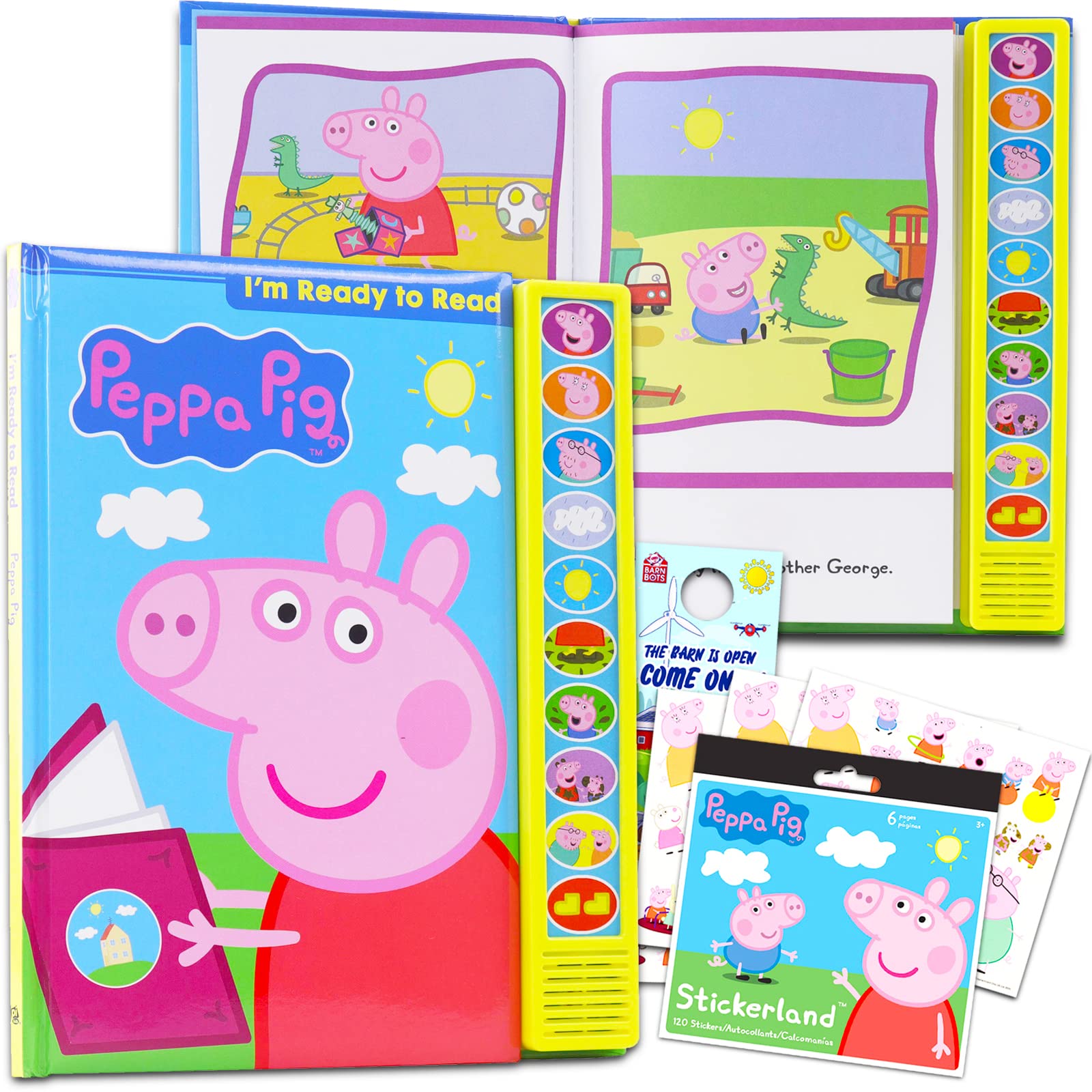 Crenstone exclusive read along sound book set for kids published by PI Kids. Spend story time with Peppa Pig and her friends! Encourage your little one to sound out the words in this story of Peppa going on her daily adventures, then press 10 buttons to hear the pages read out loud. Listen and read along to match the spoken and printed words. Simple sentences and large type make this Peppa story ideal for beginning readers. Children can spot and read aloud familiar words and sound out new ones for a rich reading experience. Expressive narration enhances reading comprehension. Includes favorite Peppa Pig characters: Peppa, George, Mummy Pig, Daddy Pig, and more! Officially licensed Peppa Pig sound book for kids. Read Along Books for Kids Sound Books for Kids Peppa Pig Storybook Peppa Pig Sound Book Read Along Books for Toddlers Sound Books for Toddlers Books with Buttons and Sounds Peppa Pig Reader Interactive Books for Toddlers Read Along Books for Kids