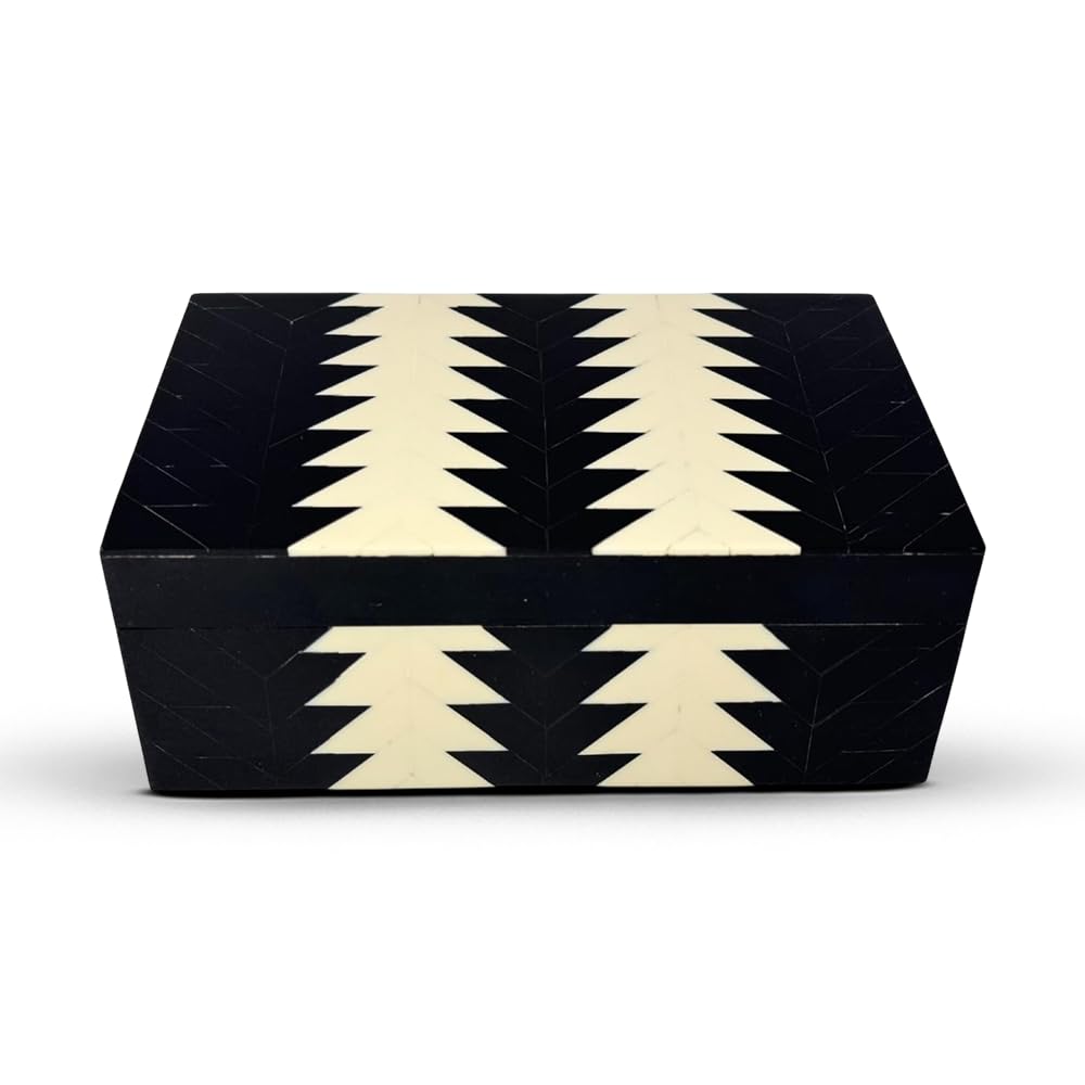Compact & Convenient: Enhance your home decor with the Perilla Home Decorative Wooden Makalu Keepsake Box, an exquisite piece in black and off white n tones. Crafted with precision, this 8"x5"x3" storage box combines functionality and beauty, making it perfect for storing jewelry, keepsakes, and other small treasures. Its timeless design seamlessly complements any room, while its durable wooden construction ensures long-lasting use. A thoughtful gift for all occasions, this decorative storage box adds a sophisticated touch to your living space. Adds Décor Value While Organizing: This versatile box not only organizes your essentials but also elevates the aesthetics of any space. Use it as a coffee table box to store coasters and remotes, or place it on an office desk to create a tidy and professional look. Its timeless wooden design seamlessly integrates into any décor style, making it a standout piece that balances utility and charm. Timeless Keepsake Treasure Box: Aptly called a "treasure box," this wooden storage box is a beautiful place to safeguard your most precious keepsakes. Store photographs, heartfelt letters, cherished heirlooms, favorite chess pieces, jewelry, or even personal mementos such as tarot cards, herbs, Feng Shui items, and watches. Its classic design and thoughtful storage features make it a perfect addition to your dressing table or any workspace, blending utility with an air of sophistication. Versatile Storage Solution for Every Need: This elegant wooden storage box is perfect for organizing and storing a variety of items, including jewelry, tools, DVDs, collectibles, game cards, crafts, postcards, mail, letters, and keepsakes. Designed to declutter and enhance spaces like desks, bedrooms, countertops, and bookshelves, it offers a timeless solution for both functionality and style. Ideal for anyone seeking a sleek yet practical organizer for their cherished items. Perfect Gift Choice: Beyond its practicality, this wooden box serves as a unique and heartfelt gift. Perfect for Mother's Day, Father's Day, or any special occasion, it conveys care and thoughtfulness to your loved ones. Its versatility extends its appeal, offering functionality and a decorative touch to their home, whether as a stylish coffee table organizer or an elegant office desk accessory. Introducing our beautifully crafted Wooden Storage Box, a stylish and practical addition to any home or office. Made from premium quality wood, this black & off-white storage box boasts durability and elegance in equal measure. With its timeless design and versatile functionality, our storage box is perfect for organizing a variety of items, from jewelry and accessories to office supplies and keepsakes.Perfect gift for Thanks giving Christmas new year.