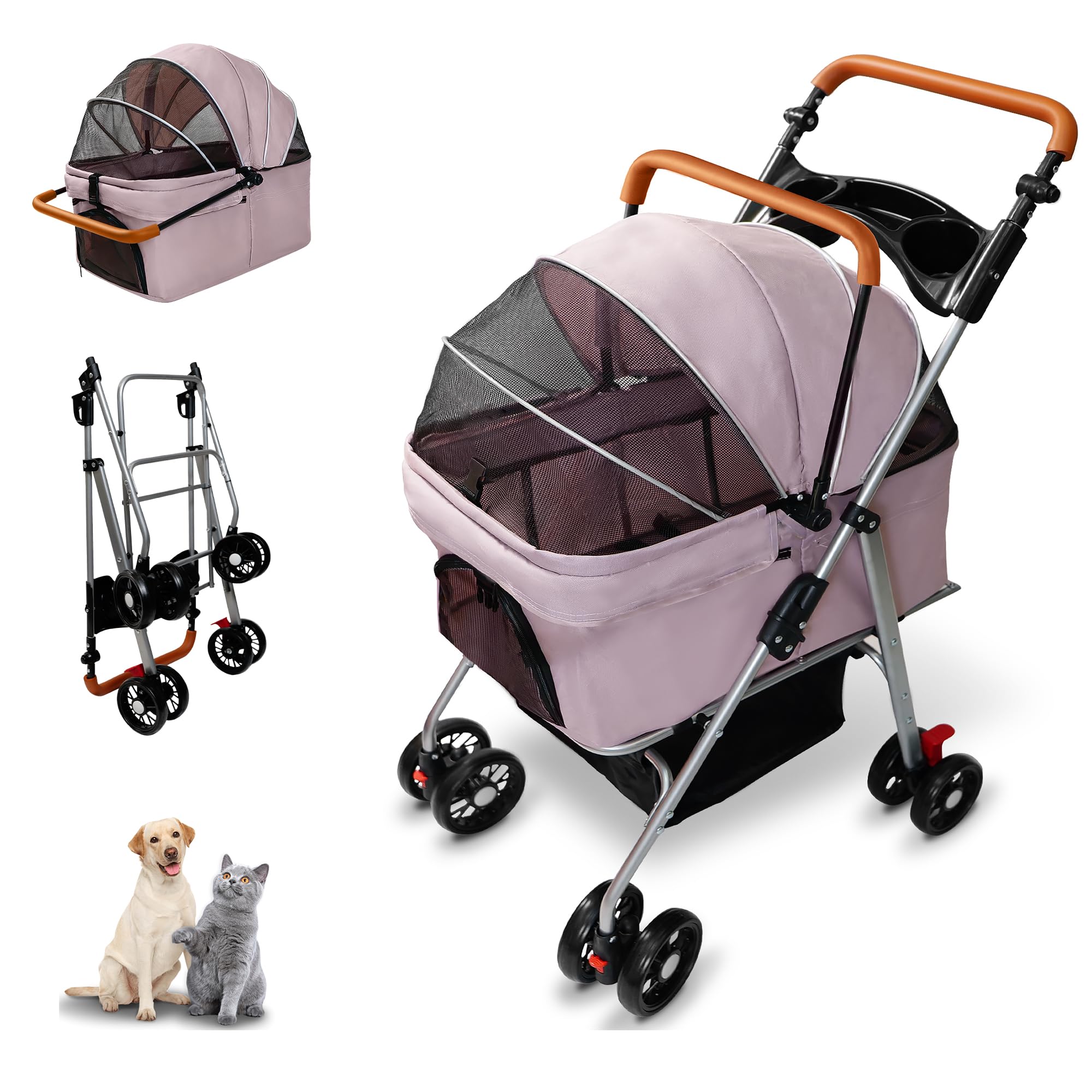 Oxford Cloth 【Comfortable for Pet】The mesh of the stroller has excellent breathability, which can ensure that pets do not feel stuffy inside the stroller and also prevent the stroller from overheating. The visible stroller allows you to see your pet at any time, increasing your interaction with the pet, reducing your anxiety and providing a better experience 【Large Storage Space & 180 Degree Adjustable Canopy】: Convenient cup holders on handlebar of puppy stroller frees your hand while keeps gear handy storage of puppy stroller gives space for toys, food, bag, etc to make tour calm and reassuring. Carry clot buckle of folding dog stroller is more convenient, less mess. The canopy of the dog stroller can be fully opened and reversely opened for a diverse view. 【Pet-friendly Roomy Space】: Ideal for small pets, young large breeds, elderly pets with limited mobility 360 degree mesh carry cot, special design of black pet folding stroller, allows wider vision, friendly for pets with anxiety folding dog stroller has breathable mesh windows on both sides of the canopy, and 2 pieces of shade cloth to cover the sunlight. 【Sturdy wheels】The wheels are sturdy,durable,and not easily worn, and can be used in most places.The wheels have shock absorption function,and for rough roads,the springs on the wheels can reduce vibration, which can alleviate the discomfort of pets.The universal wheels of the wheels can easily change the direction of the stroller's movement.The rear wheels of the wheels have a braking function to prevent accidental sliding of the stroller 【Easy to Assemble & Compact Storage】: Pet stroller ensures an effortless installation and smooth folding when traveling outside with your pets, and only one turn on the handlebar to fold it in the trunk or backseat of a car. Storage size of the folding dog stroller is lightweight, compact and neat to store for daily use, and handy to transport when needed. Each pet is a part of the family. No matter where you are, pet owners hope to be with their pets and seek your care and companionship. This pet stroller allows you to easily take your pet anywhere. It can accommodate small and medium-sized cats and dogs weighing up to 30 lbs. You can take your pet to shopping malls or travel. Take your pet out to enjoy beautiful scenery, fresh air, increase your companionship with your pet, and promote relationships with them