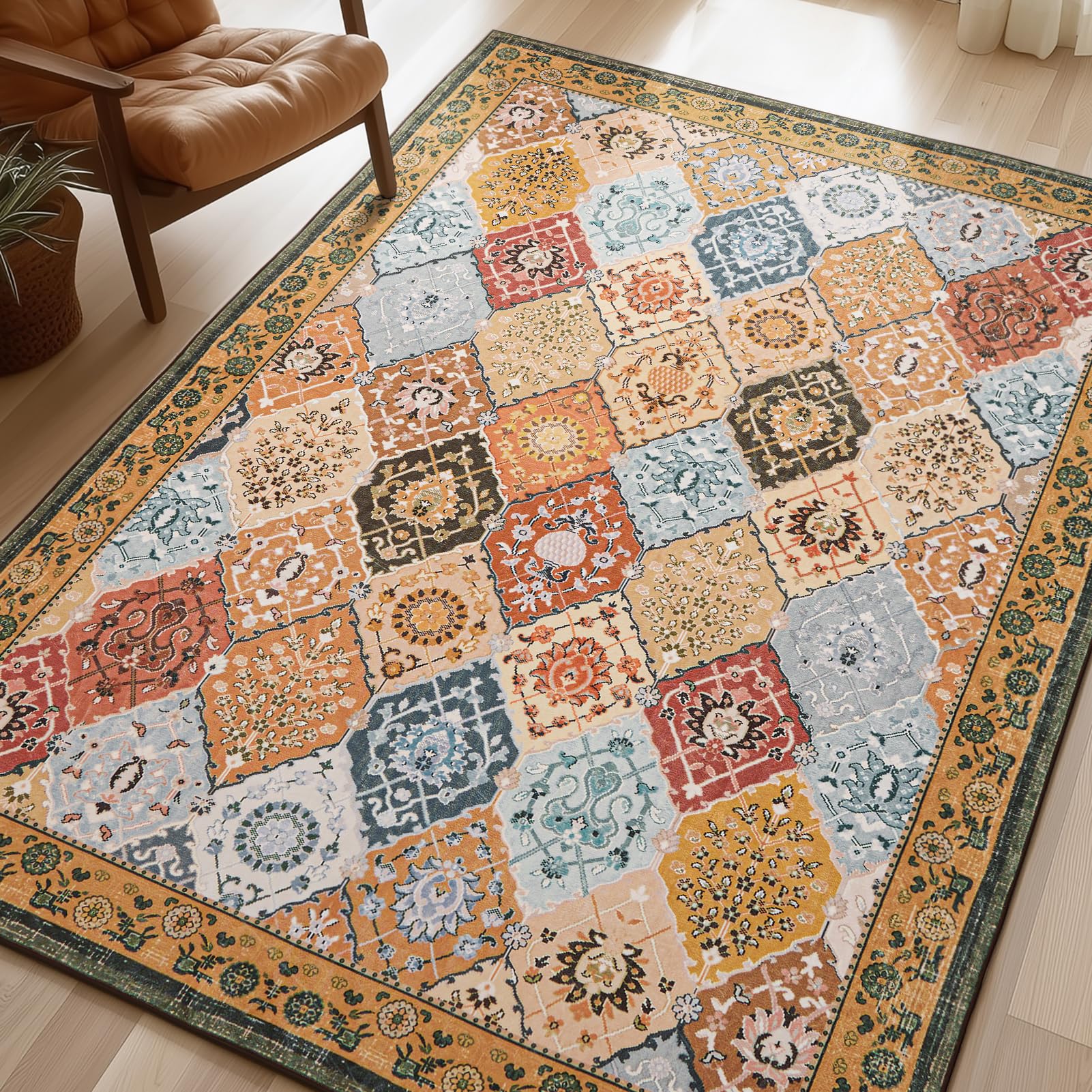 【Printed Design Area Rug】Printed rugs are a technological innovation to traditional handmade rugs, designed to look handmade, meanwhile cheaper, more durable, and more colorful, non-shedding. The Vintage Collection is traditional and timeless with a beautiful printed lived-in design that will complement your home décor 【Soft Plush Fabric & Non-Slip Backing】Cozy texture of the polypropylene yarn surface provides a soft velvety feel, combined with non-slip TPR backing that keeps the carpet more wear-resistant and safer, kids and pet-friendly. Thanks to the upgraded construction, you don't need to buy rug pads, Just one piece of Phantoscope Rug is enough. 【Ultra-Thin & High Traffic Area Rug】 Woven by machine, our rug runner with 0.15-inch ultra-thin pile height is perfect for all high-traffic areas, perfect for hallways, entryways, underneath furniture, bedroom, living room, kitchen, kids' room, dining room. 【Foldable Area Rug】 The foldable area rug is more manageable to get flat, take in or take out, convenient for daily storage, less prone to creases, lightweight yet durable finish. Especially after each machine wash, the rug can easily return to the flat. 【Machine Washable Rug】Compared with traditional handmade floor carpets, printed area rugs are lighter and easier to take care of, suitable for home washing machine and dryer. Machine dry or air dry with no heating setting only. Mild detergent, no bleach or fabric softener. Phantoscope Vintage Collection Area Rug Runner Rug - Washable Rug Boho Carpet Non-Slip for Living Room Bedroom Dining Room, Indoor Low-Pile Soft Durable Accent Rug