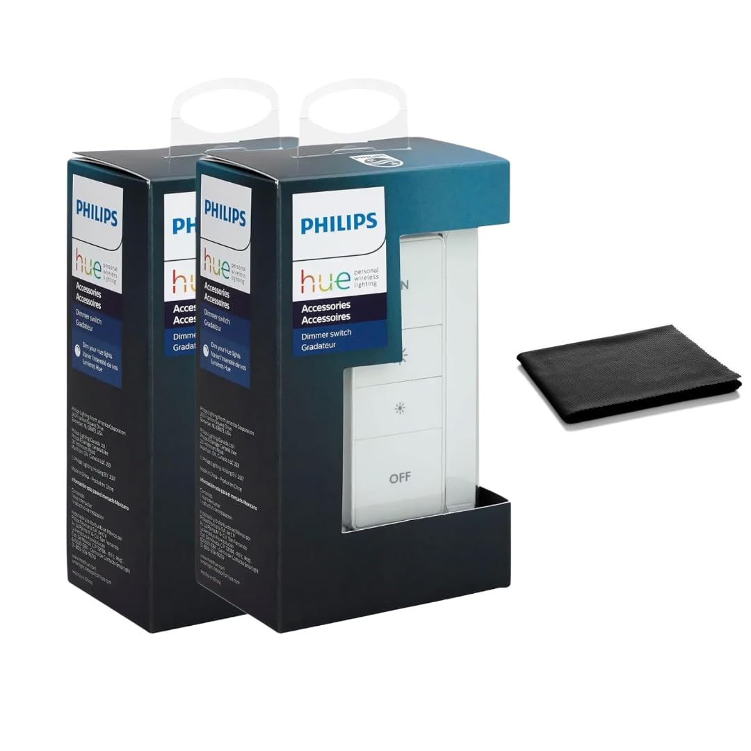Wireless Control – Instantly dim, brighten, turn lights on/off with the push of a button—no wires or electrician needed. Versatile Mounting – Use as a handheld remote or mount it to any wall with included adhesive plate. Smart Hue Compatibility – Seamlessly integrates with Philips Hue Hub for whole-home smart lighting control. Battery Powered – Long-lasting CR2450 battery included for flexible, cordless use anywhere in your home. Easy Setup – No hardwiring required; ready to use right out of the box. Adds convenience to any room. Control your Philips Hue lights effortlessly with the Hue Wireless Dimmer Switch. No wiring needed—just mount, pair with your Hue Hub, and enjoy instant on/off and dimming. Use handheld or wall-mounted. Includes battery and adhesive plate. Simple, smart lighting control anywhere.