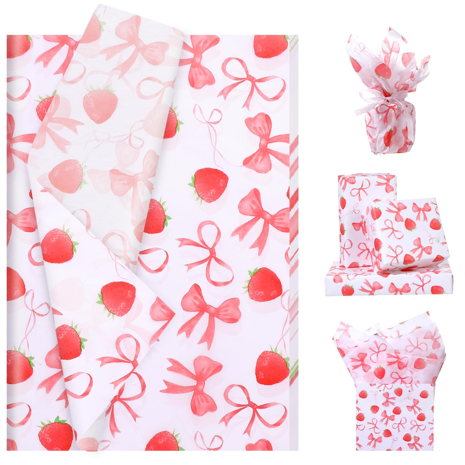 -This pack includes 100 strawberry bow tissue paper, allowing you to have plenty to wrap and embellish presents, DIY crafts, create decorative accents, and more.
