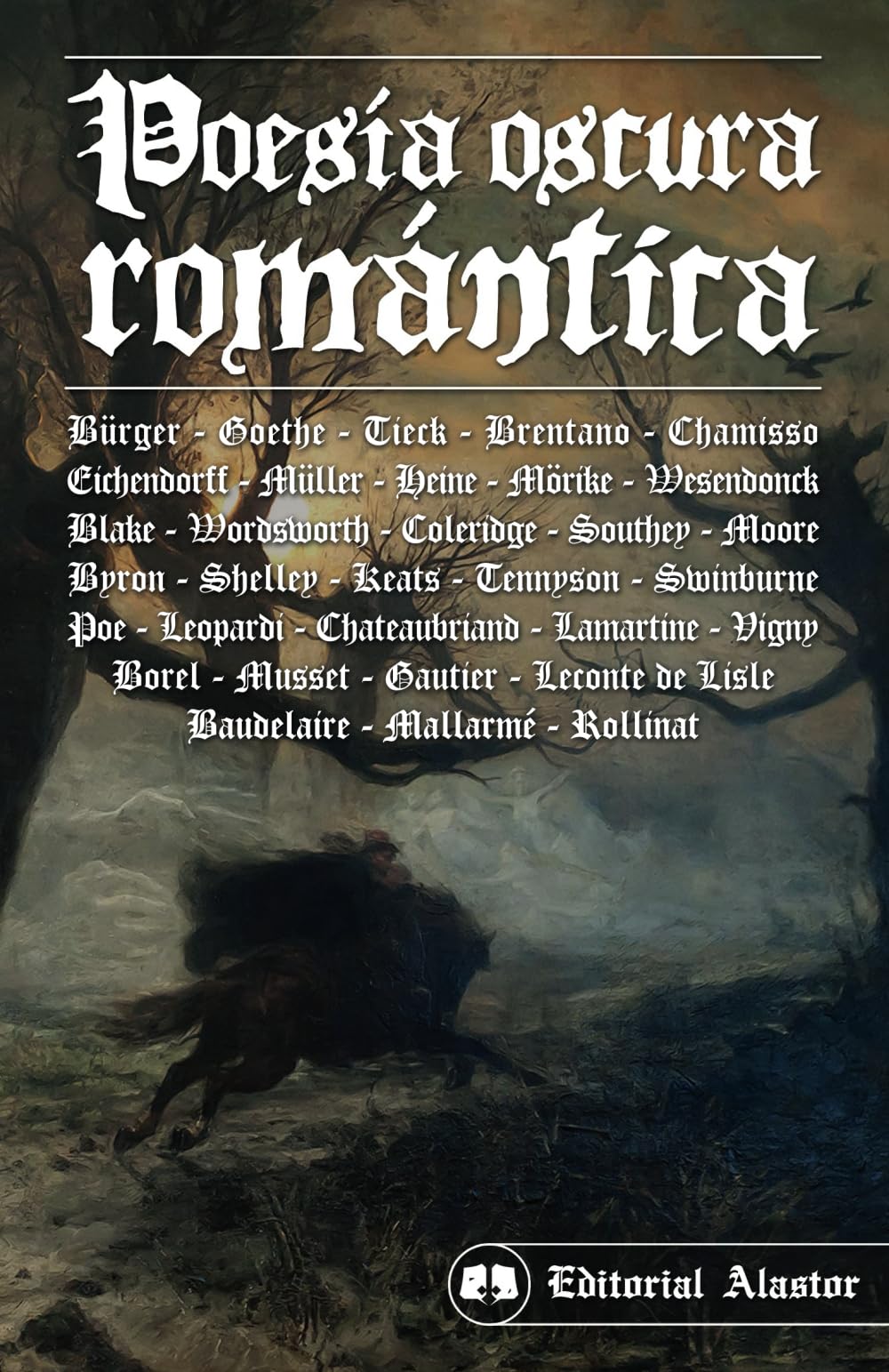 Si bien las temáticas luctuosas, oscuras y de horror estuvieron presentes en la poesía occidental desde sus mismos orígenes, no sería sino hasta el Romanticismo que el gusto por la oscuridad se generalizaría y pasaría a formar parte de la estética de un movimiento entero. Partiendo de la balada de terror y sus escalofriantes escenas, el horror y los sentimientos mórbidos cautivarían a los autores románticos, tanto a los cultores de la poesía lírica como a los baladistas, y seguirían en lo sucesivo resultando una influencia insoslayable para las diferentes escuelas posrománticas y para toda la posterior literatura de horror. Este volumen, que nos lleva de la balada alemana al decadentismo francés, nos ofrece un panorama bastante completo de la importancia que estos temas tuvieron en las letras del siglo XIX. Los autores y obras incluidos en este recorrido son Gottfried Bürger (las baladas Lenore y El cazador salvaje ), J. W. von Goethe ( El rey de los elfos , El pescador , La novia de Corinto y Danza macabra ), Ludwig Tieck ( Melancolía ), Clemens Brentano (la balada de Lorelei ), Adelbert von Chamisso ( Deja descansar a los muertos y La moribunda ), Joseph von Eichendorff ( Diálogo en el bosque y La noche ), Wilhelm Müller (poemas de Viaje de invierno ), Heinrich Heine ( Lorelei y El doble ), Eduard Mörike ( La sombra y Los fantasmas de Mummelsee ), Mathilde Wesendonck ( En el invernadero y Aflicciones ), William Blake ( Al Invierno y El Jardín del Amor ), William Wordsworth ( Pieza nocturna y Tejos ), Samuel Taylor Coleridge ( La balada del viejo marinero ), Robert Southey ( Mis días entre los muertos han pasado y El obispo Hatto ), Thomas Moore ( El anillo y El escudo ), Lord Byron ( Oscuridad y El hechizo ), P. B. Shelley ( Himno a la Belleza Intelectual y Oda al Viento Oeste ), John Keats ( Oda a un ruiseñor y La Belle Dame sans Merci ), Lord Tennyson ( Lágrimas, vanas lágrimas y Titono ), Algernon Charles Swinburne ( El jardín de Proserpina ), Edgar Allan Poe ( El cuervo , La durmiente , Solo y Ulalume ), Giacomo Leopardi (poemas de sus Idilios y Cantos ), François-René de Chateaubriand (obras de Cuadros de la naturaleza ), Alphonse de Lamartine (varias de sus Meditaciones poéticas ), Alfred de Vigny (La Desdicha ), Pétrus Borel ( Aislamiento ), Alfred de Musset (dos de sus Noches ), Théophile Gautier ( Lamento ), C. M. Leconte de Lisle ( El frío viento de la noche y A un poeta muerto ), Charles Baudelaire (piezas de Las flores del mal ), Stéphane Mallarmé ( La siesta de un fauno ) y Maurice Rollinat (poemas de Las neurosis ).
