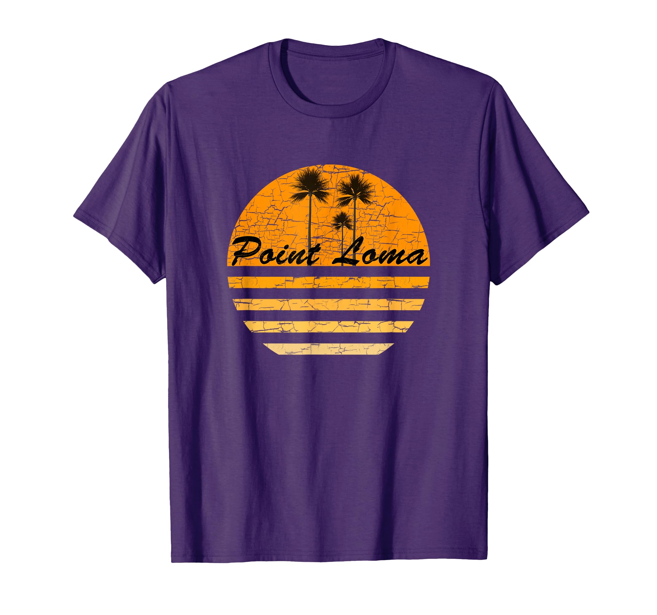 Great gift idea for Point Loma California natives, surfers, skaters, beach bums, people who love Point Loma, and people who love vintage retro style throwback surf designs. Retro style Point Loma illustration featuring a multi colored sunset/sunrise. Perfect for lounging on Point Loma beaches, sipping on cool drinks, fishing, surfing, boating, or just for day to day Point Loma wear. Lightweight, Classic fit, Double-needle sleeve and bottom hem