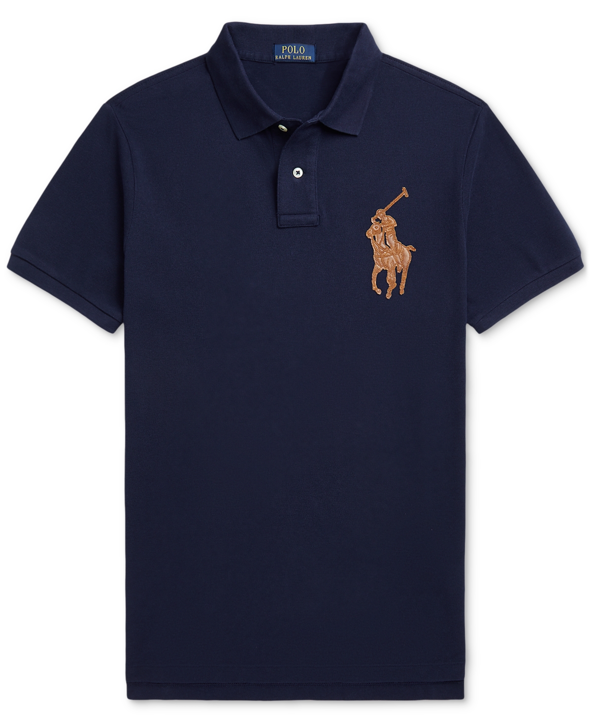 An American style standard since 1972, the Polo shirt has been imitated but never matched. Over the decades, Ralph Lauren has reimagined his signature style in a wide array of colors and fits, yet all retain the quality and attention to detail of the iconic original. This trim version is made with Polo Ralph Lauren's highly breathable cotton mesh and finished with a leather patch of the signature Big Pony.
