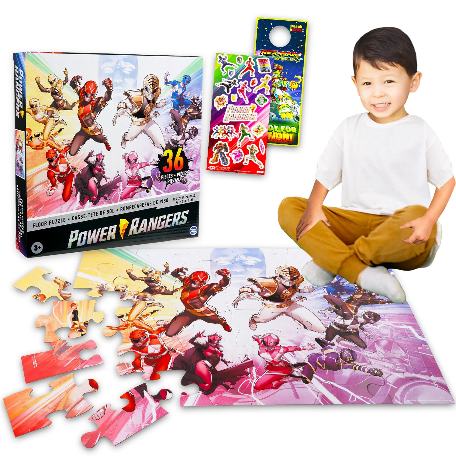 Power Rangers Floor Puzzle for Kids Set - Bundle with 36 Piece Floor Puzzle Plus Stickers, More