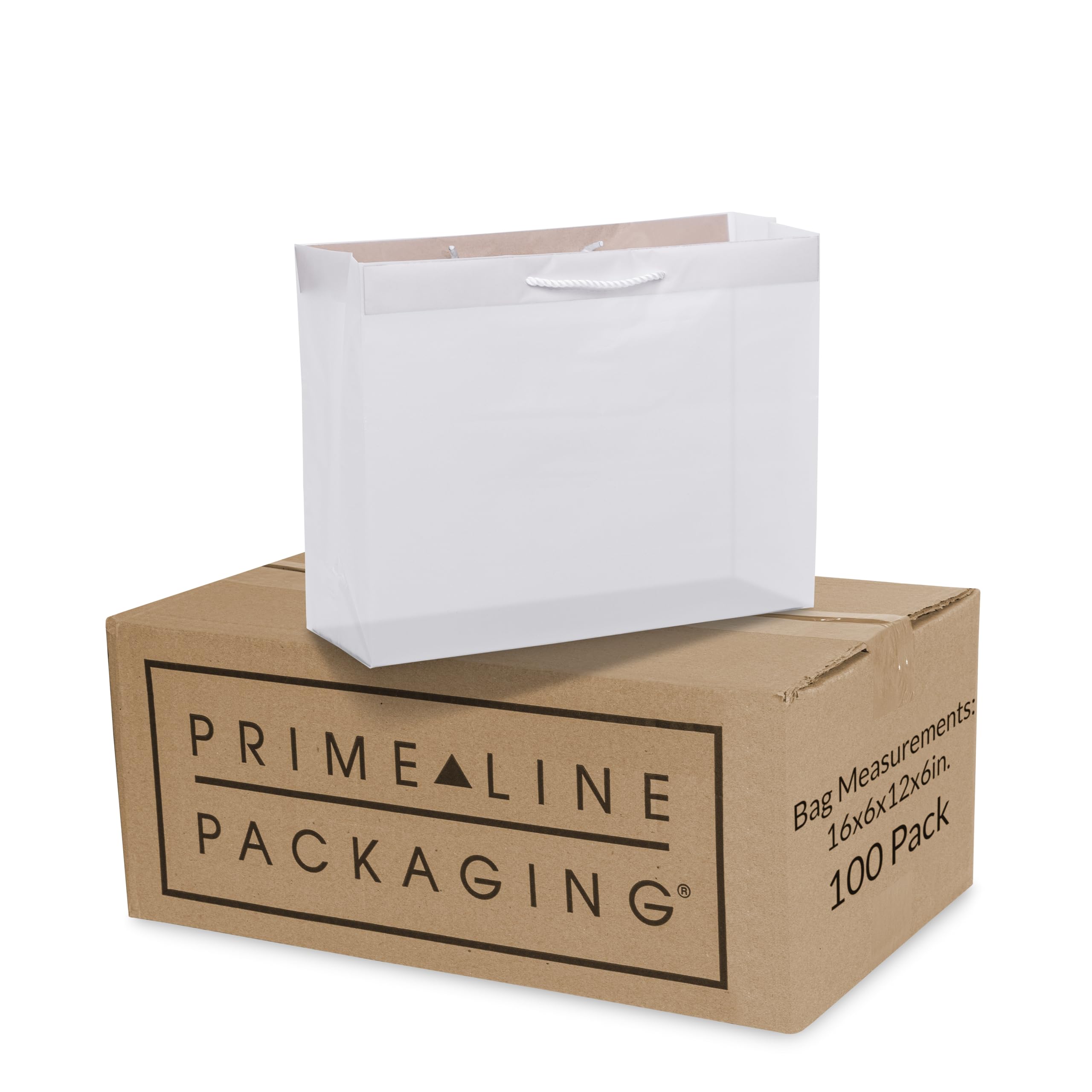 VERSATILE MERCHANDISE BAG – Ideal for retail merchandise, boutique stores, corporate events, or thank-you gift bags. These bags are perfect for packaging takeout, holding products, or as party favors for guests on special occasions. PREMIUM FROSTED PLASTIC – Made from high-quality frosted polyethylene plastic, these bags offer privacy and security. The frosted finish helps conceal contents, making them ideal for high-end merchandise, gifts, or confidential items. DURABLE & REUSABLE – Crafted from strong, water-resistant frosted plastic, these bags are designed to last. They are perfect for both single and multiple uses, reducing waste while ensuring your items stay safe and secure inside. CONVENIENT SOFT ROPE LOOP HANDLES – The soft rope loop handles provide a comfortable, sturdy grip, making it easy to carry heavier loads, whether packaging merchandise, takeaway food, or special gifts. Great for customers on the go. PACK OF 100 – Measuring 16x6x12 inches, this bulk pack provides 100 frosted plastic bags, offering an efficient, cost-effective solution for small businesses, restaurants, event planners, and gift packaging needs. Whether you're hosting an event, running a small retail business, or managing a restaurant, you'll need a reliable, high-quality bag to impress your guests and customers. These durable white-frosted plastic shopping bags with soft rope loop handles are exactly what you’ve been searching for. Measuring 16x6x12 inches, they’re ideal for thank you gifts, holding merchandise, or packaging takeout from restaurants. The sturdy cardboard bottom ensures the bags are stable and easy to pack while standing upright. Made from premium frosted polyethylene plastic, these bags are water-resistant, reusable, and built to last. The elegant frosted design offers both privacy and security, concealing the contents inside, and making them perfect for a variety of uses. Available in a convenient pack of 100, these frosted bags are the ideal choice for store owners, restaurant owners, event planners, and anyone needing reliable, eco-friendly packaging solutions