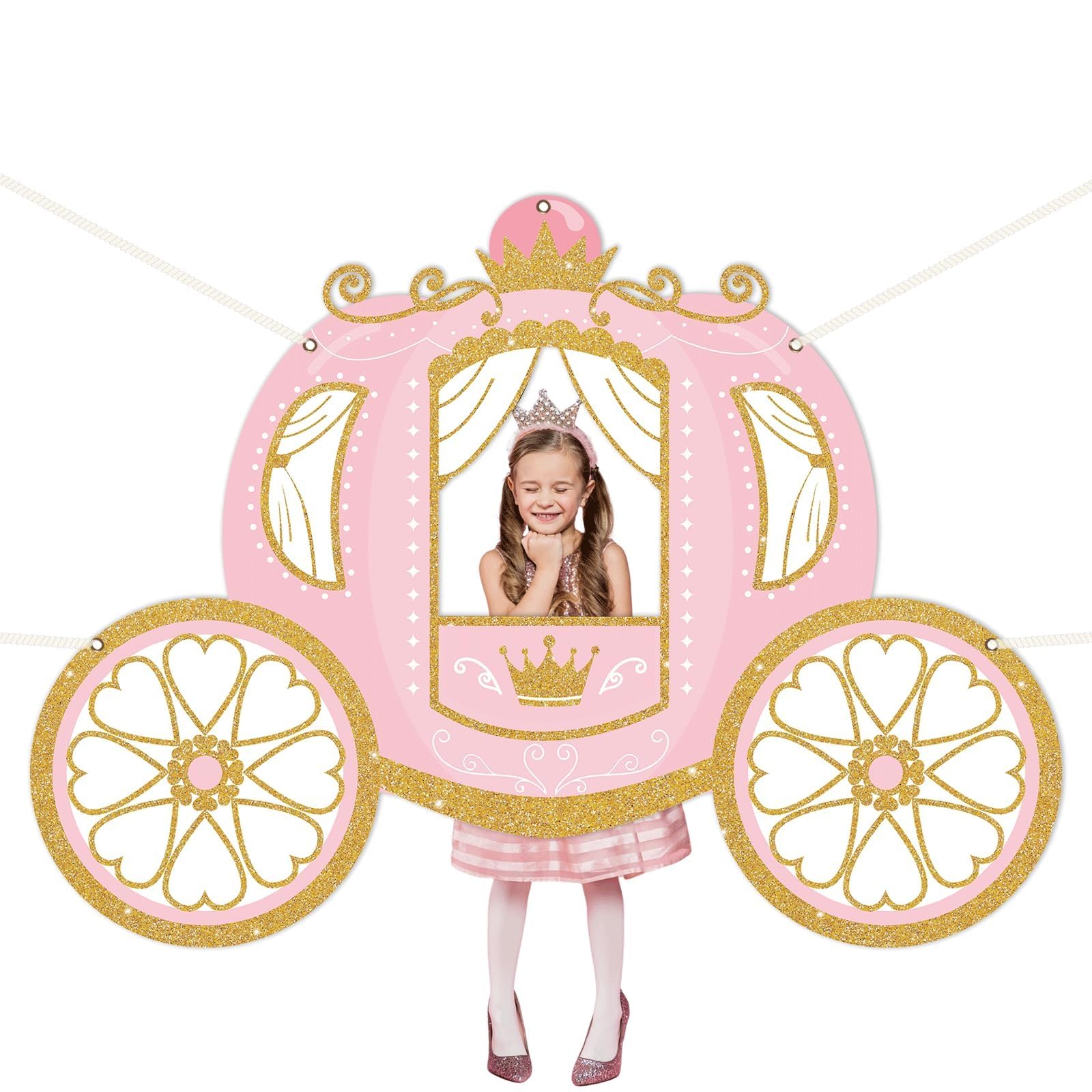 Justforjoyful Princess Birthday Party Decorations Princess Carriage Photo Booth Props Princess Party Backdrop Princess Themed Door Banner Decor for Girls Baby Shower Photo Background Party Supplies