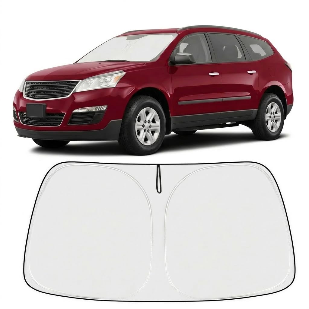 DESIGNED IN USA!!! Custom Design: The front windshield shade has been custom cut specifically for Traverse. Precise fit design and Reinforced steel rings make a precise and secure fit to the window, no need to use suction cups to hold it in place. It won't sag or collapse like other car heat shields. Fits for 2018-2025 Traverse Upgrades Design Sunshade: The windshield cab shade for Traverse boasts a double layer of heat shield fabric to keep out the sun. The first layer is premium 240T reflective polyester and the second layer is high-quality fabric. Double insulation, and double protection. The best shade and insulation on the market Easy to Use and Store: Unlike other products on the market, We use a Lightweight collapsible car window sun shade design. The windscreen sunshade can be easily popped up and folded in seconds for daily use. You can easily tuck the car sun visor protector into your door pocket Keep Car Cool: Engineered with a silver coating to reflect heat, reducing heat buildup by up to 40°F and blocking 99% of harmful UV rays. Keep your Traverse cooler and prevents leather seats from cracking and fading Excellent Material: Proadsy windshield sun shade made of high-quality fabric that blocks and reflects heat, harmful UV rays, and sunlight while being less prone to wrinkling. Reinforced steel bezel provides better durability, ensuring a longer and safer life The front windshield shade has been custom cut specifically for Chevrolet Traverse. Precise fit design and Reinforced steel rings make a precise and secure fit to the window, no need to use suction cups to hold it in place. It won't sag or collapse like other car heat shields. Fits all 2018-2024 Chevrolet Traverse.