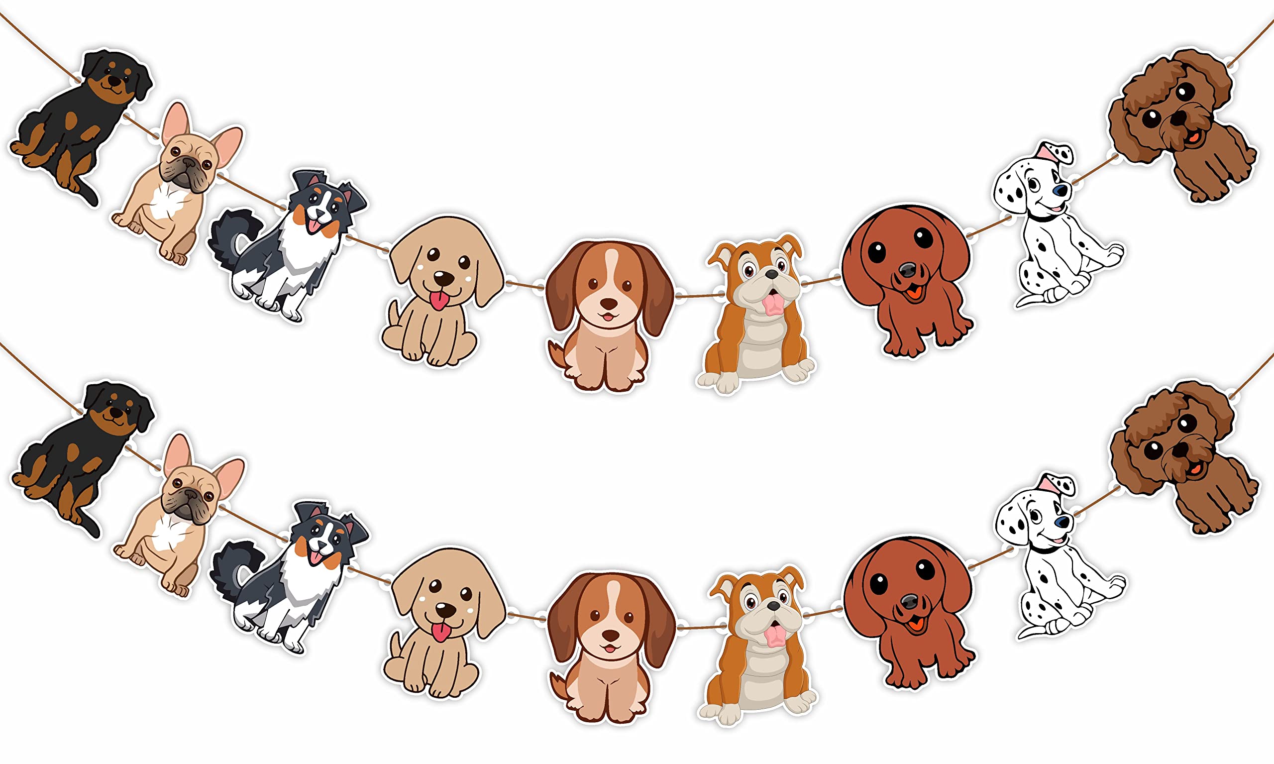 Elegant Decor: Let your wall have a pleasant and elegant decoration. Versatile Usage: Flexible to split into pieces for versatile usage. Quality Enhancement: Garniture with radiant and vibrant colorations. Versatile Theme: Perfect for events, parties, celebrations, and more. Customizable Design: Show revamp and splendid look for any occasion. Add a touch of cuteness and charm to your celebration with the Pupy Dog Garland, the perfect decoration for dog lovers and who adore playful puppies. Whether you are hosting a birthday party, baby shower, school event, or pet-themed celebration, this garland instantly brightens up your venue and sets a fun, cheerful atmosphere. With adorable pupy designs and bright colors, it creates a warm and inviting environment that and adults alike will enjoy.Crafted from high-quality, eco-friendly, and durable cardstock, this garland is lightweight yet sturdy, ensuring it holds up beautifully throughout the event. The colorful pupy illustrations bring life to your party decorations, making it a centerpiece that captures attention. Whether you hang it across walls, dessert tables, party entrances, or backdrops, it creates an engaging and playful look that instantly enhances your theme.The Puppy Dog Garland is incredibly easy to assemble and hang, saving you time and effort while giving your celebration a polished finish. Parents and party planners love its versatility, as it pairs perfectly with pupy cake toppers, banners, cupcake toppers, and other decorations to create a full, coordinated theme.This garland isn’t just a decoration—it’s also a wonderful photo backdrop. Its cute pupy artwork makes cake-cutting moments, selfies, and group pictures extra special. Guests will enjoy posing with it, and the birthday will love seeing their favorite theme come to life.Reusable and long-lasting, the Pupy Dog Garland can be stored for future celebrations, pet parties, or even used as room décor in a bedroom or playroom. It’s a great way to keep the memory of a special day alive.Make your birthday celebration (or any event) extra memorable with the Pupy Dog Garland, a decoration that combines playfulness, cuteness, and joy for all ages.