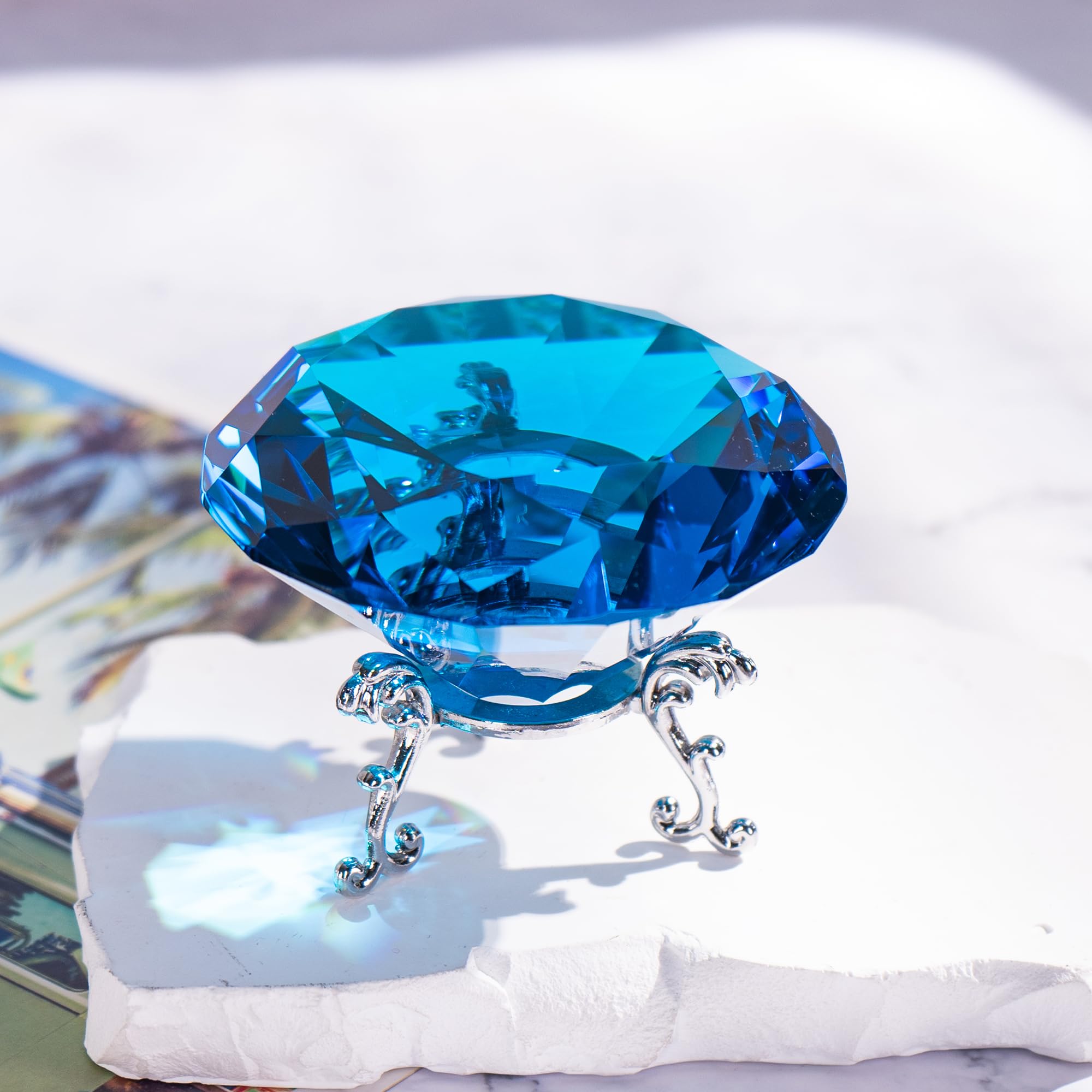 Diamond Paperweight - Diameter: 80 mm (3.15 inch), Height: 52 mm (2.0 inch), Silver-finish metal stand ensures stability while adding vintage elegance Good Quality - Our crystal diamond paperweight is made of high-quality K9 grade acrylic-free crystal glass for long-lasting beauty, no impurities and bubbles, non-toxic and scratch-resistant Prismatic Sparkle - Premium crystal-cut facets reflect sunlight and indoor lighting, creating mesmerizing rainbow effects for eye-catching displays, making your space bright and beautiful Multi-Purpose Elegance - Ideal for elevating home decor, wedding table centerpieces, nail art display, or as a symbolic gift (anniversary/milestone celebrations) Thoughtful Gifting - Our glass diamond crystals are all carefully packed in pearl cotton in an exclusive gift box to avoid damage. It is the perfect gift for friends or family on birthdays, anniversaries, Christmas, or housewarming surprises Our 8cm blue crystal diamond with metal base is a timeless decorative piece crafted from ultra-transparent optical crystal.