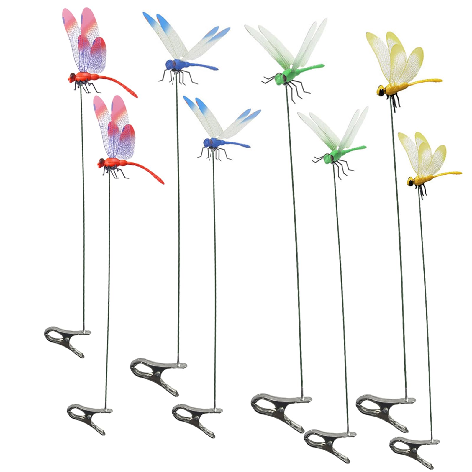 FABULOUS FAKE DRAGONFLY CLIPS: Welcome spring with our fabulous fake dragonfly clips! These beautiful dragonfly clips feature a bright and colorful design. Fake dragonflies add spring energy and represent the vibrant life of spring. Featuring intricate 3D designs, these fake dragonflies come to life and fill your furnished outdoor space with joyful energy and the warmth of the season. FILL YOUR OUTDOORS WITH LIFE: Create a vibrant spring wonderland in your outdoor space with these lifelike dragonflies. Watch as they bring life to your home garden, patio, lawn, pathways and entryways, filling you with joy and happiness.Dragonfly hat clip are designed to withstand all weather conditions, so you can enjoy their vibrant colors all year round, making your garden or balcony even more vibrant and alive IDEAL GIFT CHOICE: These beautifully vivid outdoor fake dragonfly decorations are ideal. Whether it's a celebration, housewarming, party or holiday decoration, they will add a festive touch to your holiday. The Natural Organic Concepts Pole Clips include 8 dragonflies, two each of red, yellow, green and blue, to match the colors of your garden and add visual beauty. Each fake dragonfly comes with a clip, just open the clip and clip it to your hat, clothes or garden, easy to operate TOP CRAFTSMANSHIP: These beautiful dragonfly clip decorations are made of PVC waterproof material and stainless steel clips for durability. Their anti-coating ensures that they won't fade easily even when exposed to heat, sun, humidity or rain. These outdoor fake dragonflies are superbly crafted and colorful, perfect for long-lasting outdoor use. They convey wishes for a better life and holiday cheer ENHANCE SPRING AND SUMMER AMBIENCE: When the sun is shining and the flowers are in full bloom, our exquisite fake dragonfly will fill your garden with a strong sense of spring. These exquisite decorations not only add a touch of beauty to your garden or patio, but also enhance the whole spring or summer atmosphere. They are the perfect addition to your patio decor, creating a welcoming atmosphere that lasts all season long. Start the spring fun with these lifelike dragonfly decorations