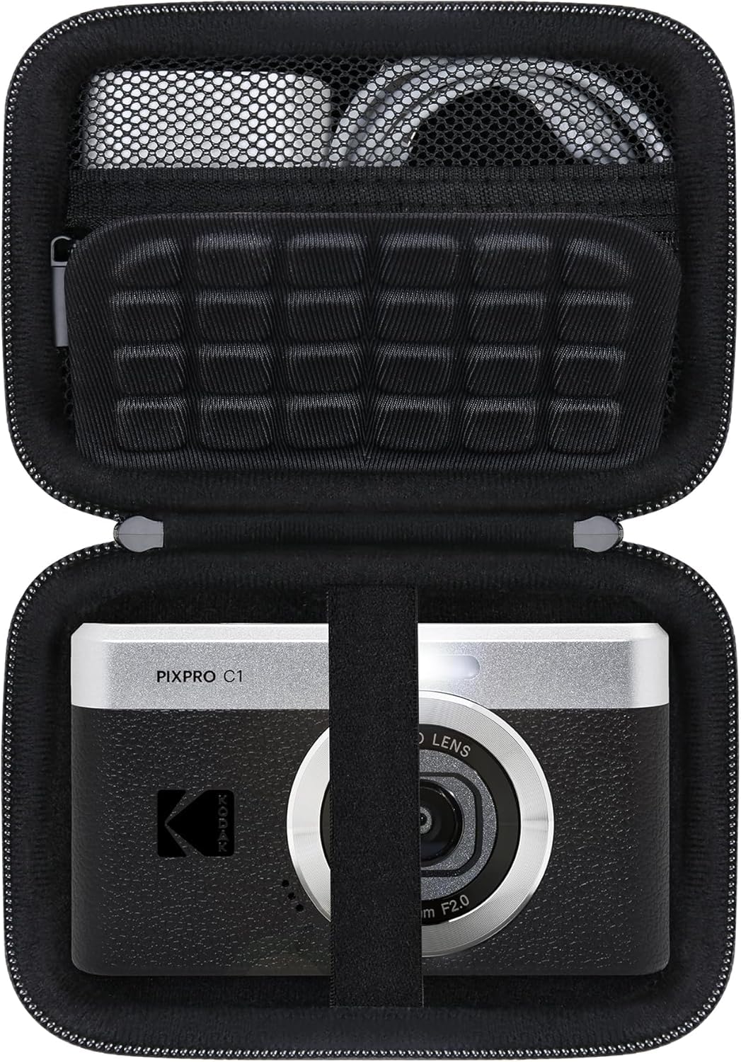 Perfect Fit: This hardshell digital camera case is specifically designed for KODAK PIXPRO C1 Friendly Zoom digital camera. With external dimensions of 5.18 x 3.84 x 2.58 inches, it offers a precise fit for the KODAK PIXPRO C1 Friendly Zoom compact point-and-shoot camera, along with its charging adapter, spare battery, USB cables, memory card, and KODAK PIXPRO C1 accessories. (Note: Case only; digital camera and accessories are not included.) Superior Material: Crafted from premium PU and rigid EVA, this kodak pixpro c1 friendly zoom digital camera case boasts exceptional protective properties—resistant to squeezing, collisions, shocks, splashes, dust, drops, and stains, with semi-waterproof capabilities. It effectively safeguards your KODAK PIXPRO C1 Friendly Zoom camera against damage during both indoor and outdoor use, preventing bumps and scratches to keep your device protected as you capture every moment. Exquisite Design: This PIXPRO C1 case has double zippers for easy opening and closing, kodak pixpro case comes with a practical spacious zippered mesh pocket so you can have more space to accommodate kodak pixpro camera charger, charging cord and batteries, keeps kodak pixpro c1 camera accessories tidy and clean in the kodak pixpro c1 camera carrying case and easy reach. Professional Protection: This KODAK C1 camera case comes with a detachable wriststrap, you can easily carry kodak pixpro friendly zoom c1 13mp digital camera to go anywhere. The reasonable interior design of kodak pixpro c1 camera travel case with an elastic band, keeping kodak pixpro c1 digital camera from banging around. Perfect fits for your kodak pixpro c1 video camera! Awesome as a gift: This kodak pixpro c1 case is stylish and practical for family birthdays, adventures, hiking, traveling, outdoor camping, photography trips, large family gatherings, business, school, vacations, at home, in the office, at Christmas, and at the beach, which makes your travel more convenient, and easily fits in a backpack or bag. Case