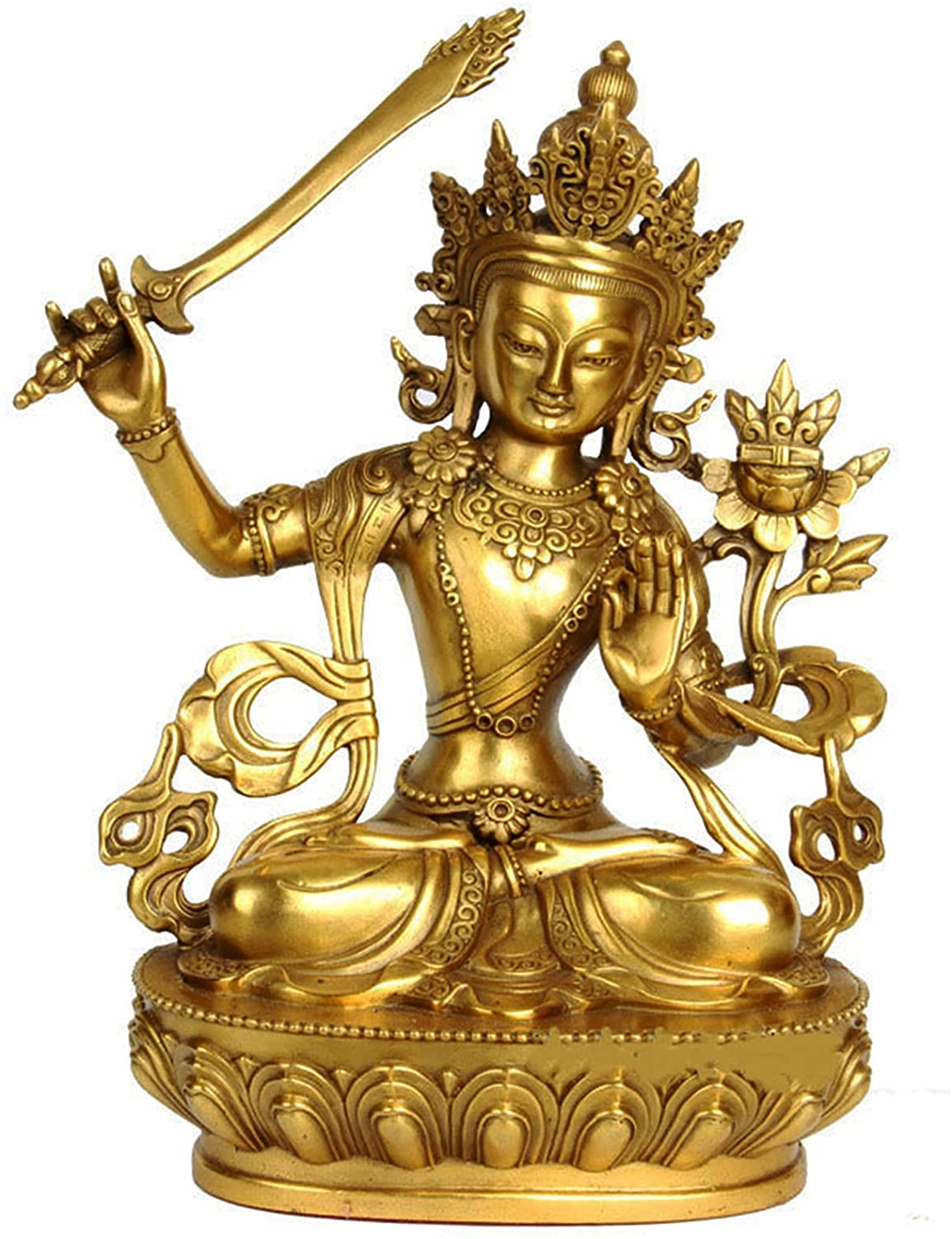 Material: This Artwork is Made of Brass. Exquisite Details Make This Statue Come Alive! (The Product May Have Slight Color Difference Due to Photographs and Late Tones. Please refer to the Actual Product.) Design Concept: Manjushri Bodhisattva is one of the Buddhas. Manjushri, so Known AS The Prince of the Law, is a Symbol of Wisdom. HE Holds The Vajra Sword (Sword Symbolic Wisdom) on His Right. With A Cyan Lotus Flower in The Left Hand, There is a Vajra Prayer Roll on the Flower (A Symbol of Infinite Wisdom). The Mountain is a Lion (Which Means) Wise and Powerful). This statue is suitable for various decoration styles, such as put it in the living room, bedroom, dining room, office desk, bookshelf, etc. Exquisite handmade craft, very design, durable and easy to clean, definitely can bring you big happy;A great gift with a best wish to your family, friends and business partners Perfect Gift for Loved Ones, Fengshui. Enhance Your Home and Office With This Symbol of the Buddha Statue of Peace and Harmony. May This Peaceful Statue Bring You Peace and Happiness. Very Attractive Buddha statue.