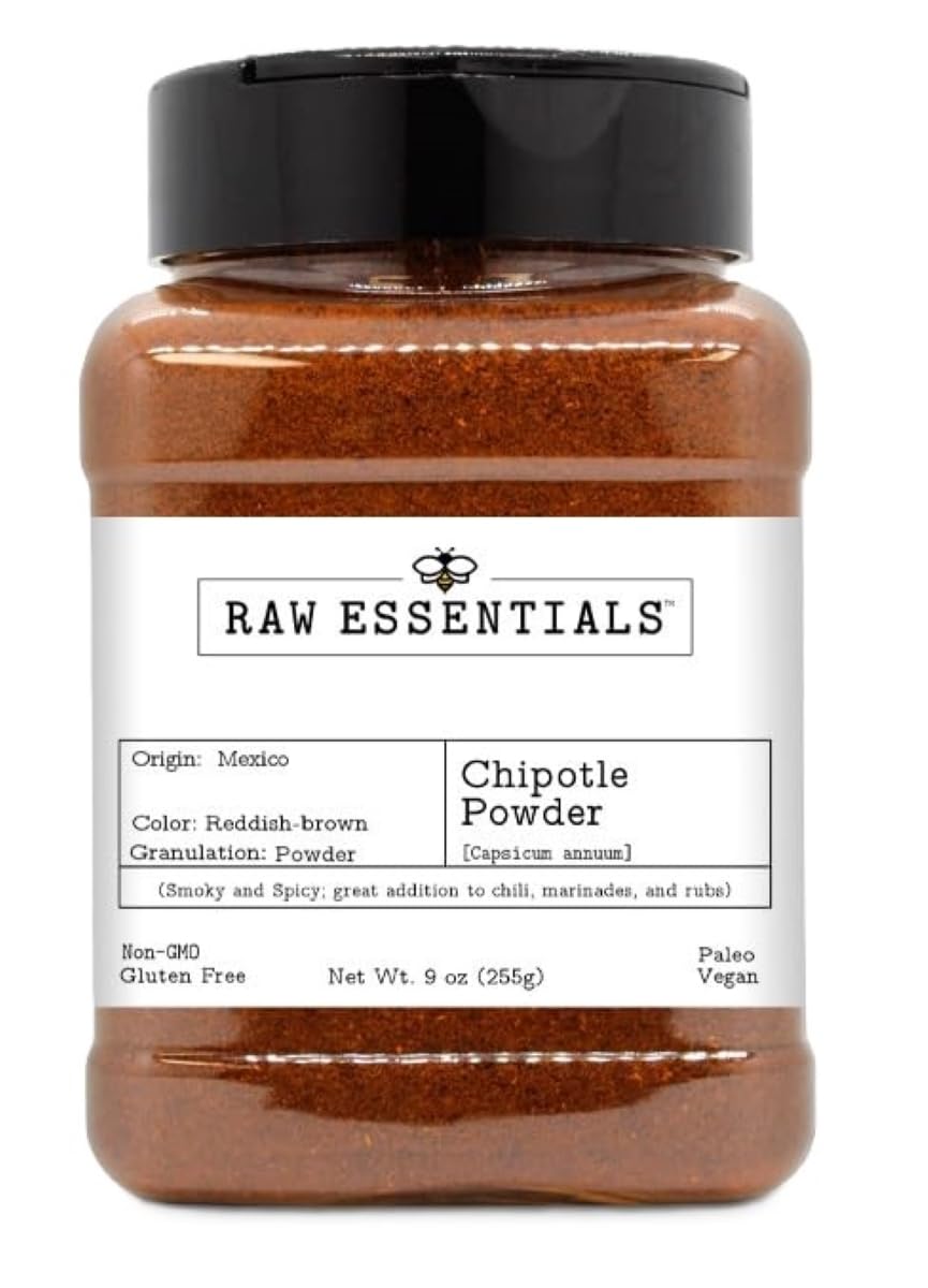 Intense Smoky Flavor: Our Chipotle Powder offers a robust smoky taste that’s both rich and spicy. The deep, earthy flavor comes from smoked jalapeño peppers, adding a distinctive kick to your dishes. This spice is perfect for those who love a little heat with a lot of depth. Versatile Culinary Spice: Chipotle Powder is a versatile spice that can be used in a variety of dishes. Sprinkle it on roasted vegetables, stir it into soups, or even add it to sauces and dips for a smoky kick. It’s also great for seasoning tacos, burritos, and other Mexican-inspired dishes. Premium Quality: Sourced from high-quality smoked jalapeño peppers, our powder ensures a consistent and intense smoky flavor, encapsulating the essence of chipotle in every sprinkle. Essential for Mexican Cuisine: Whether you’re an experienced cook or just starting to explore Mexican cuisine, Chipotle Powder is an essential spice in your pantry. Its unique flavor profile brings authenticity to a wide range of traditional and contemporary dishes. Non-GMO, Gluten-Free, Paleo, and Vegan: Our Chipotle Powder is made with quality and dietary preferences in mind. It’s non-GMO, gluten-free, paleo-friendly, and vegan, making it a wholesome choice for anyone looking to add bold flavor to their meals without compromising on dietary restrictions. Ingredients: Smoked and Dried Jalapeño Peppers, Contains Less than 2% Silicon Dioxide Elevate your culinary creations with the bold and smoky flavor of our Raw Essentials Chipotle Powder. Made from smoked and dried jalapeño peppers, this spice brings a rich, earthy heat that adds depth to any dish. Whether you’re crafting a hearty chili, preparing a marinade for grilled meats, or mixing up a flavorful rub, Chipotle Powder delivers a perfect balance of smoky and spicy notes. This versatile spice is non-GMO, gluten-free, paleo, and vegan, making it a great addition to any kitchen. Packaged in a 9-ounce bottle, it’s ready to enhance your meals with a touch of authentic Mexican flavor.