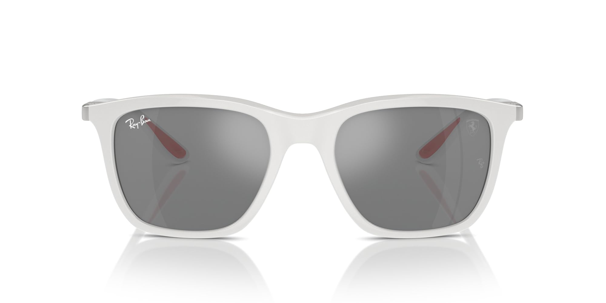FRAME FEATURES: RB4433M Scuderia Ferrari Collection sunglasses feature a square, white frame with grey mirrored silver lenses F1 racing car inspired temple design. RAY-BAN SCUDERIA FERRARI COLLECTION: Ray-Ban for Scuderia Ferrari like its never been done before. This drop showcases a mix of active and lifestyle models, inspired by the iconic F1 team and made from state-of-the-art racing materials. The sleek construction is combined with signature Scuderia Ferrari details for a race-ready look that will beat all the competition. RAY-BAN SCUDERIA FERRARI COLLECTION CASE & CLEANING CLOTH INCLUDED: Each pair of Ray-Ban Scuderia Ferrari Collection sunglasses come with special Scuderia Ferrari branded cloth and case to clean and protect your sunglasses from scratches and damage. 100% UV PROTECTION: To protect your eyes from harmful UV rays, these Ray-Ban sunglasses include lenses that are coated with 100% UV protection.