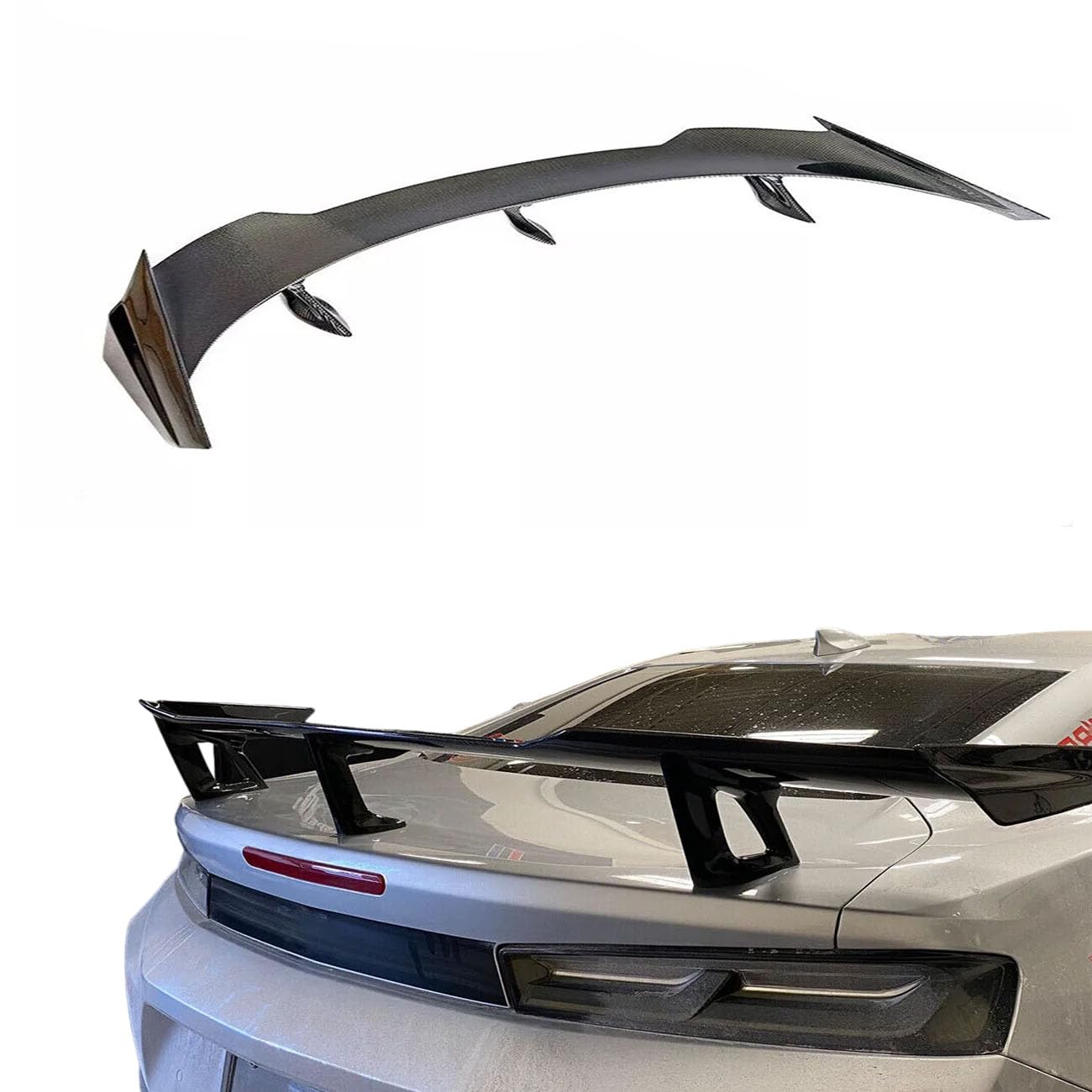 Fitment: Compatible with Chevy Camaro 2016-2022 Models Without Rear Spoiler Camera. Only Fits For Models WITHOUT Active Spoiler Rear-View Camera. Drilling Is Required For Installation For RS/SS 1LE Models. Material: The material is not real carbon fiber, it's carbon pattern style Easy Installation: The use of high strength adhesive double sided tape simplifies the installation process and allows for quick installation. Streamlined Design: The carefully designed aerodynamic shape can effectively reduce wind resistance, improve vehicle stability and make your car look more dynamic. Perfect After-sales Service: If you have any questions, please feel free to contact us. Features: