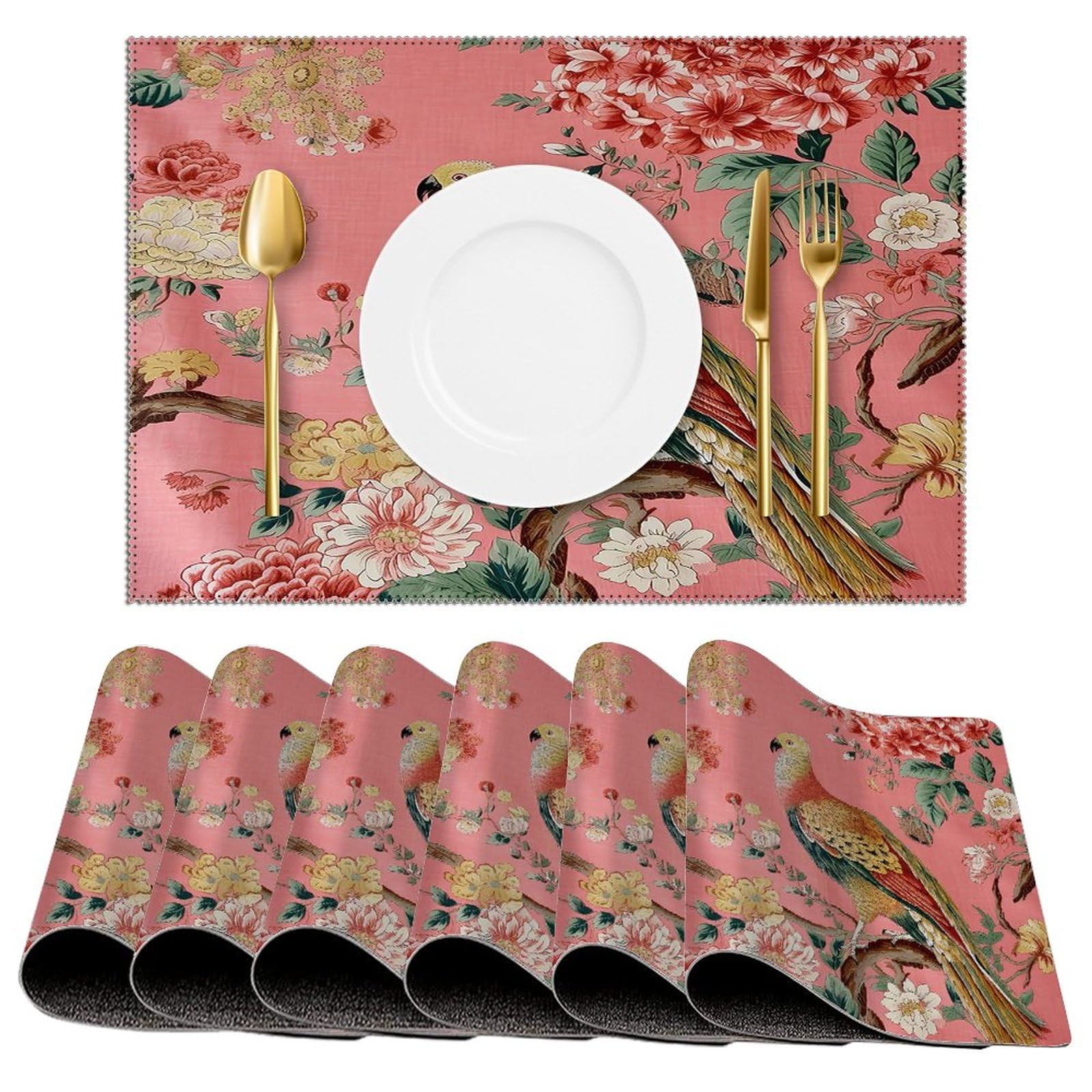 Material: Made of high quality polyester fabric, which is durable, non-slip, heat resistant and safe. Protect Your Furniture from Damaging. Size: 12 x 18 inches; Package come with 6 PCS place mats. Elegant design matches your dinner table, the unique place mats add additional fun to your kitchen table, coffee time, etc. A good choice for family daily use, kitchen, hotel or business office, enjoy a laugh and a favorite drink; Also a great housewarming, birthday or holiday gifts for your family friends. Care Note: Do not use machine wash; hands wash with warm water or wipe it directly. Easily stored, it can roll up to put it away. How to eat and have a sense of ceremonies, you only need a unique placemat.