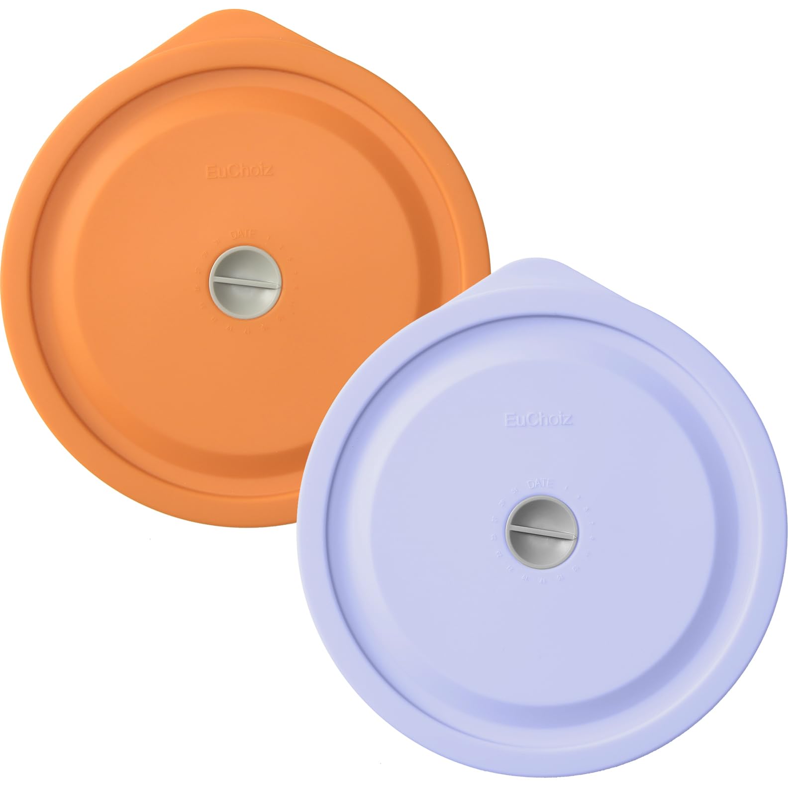 【Fit Replacement Cover】: Storage cover lid for 7 1/4” Diameter Pyrex bowls 7-Cup/ glass round bowl/ storage containers. BPA free. 【Unique knob design】: Turn the knob to the date of the day when you put the food in, so that you don't miss the expiration date. The knob marks the storage date so as not to miss the best tasting period. 【Fully Leak Proof Design】: They will tight fit reduces leakage, provide a secure seal to keep your food airtight to lock in freshness. 【Easy to clean】: Our Silicone lids are dishwasher safe and freezer safe. Our silicone material is reusable, not easily damaged, Good flexibility and more durable than plastic. 【100% Food Grade Silicone】: Differ from other plastic lids, these silicone lids are made of high quality silicone material. The lids withstand temperatures from -104℉ to 446℉ (-40℃ to 230℃). Freezer safe and Microwave safe. Replacement Lids for Pyrex 7402-PC 7 Cup, Silicone Round Storage Cover Lid for Anchor Hocking Glass Bowl 2 Pack with Date Mark