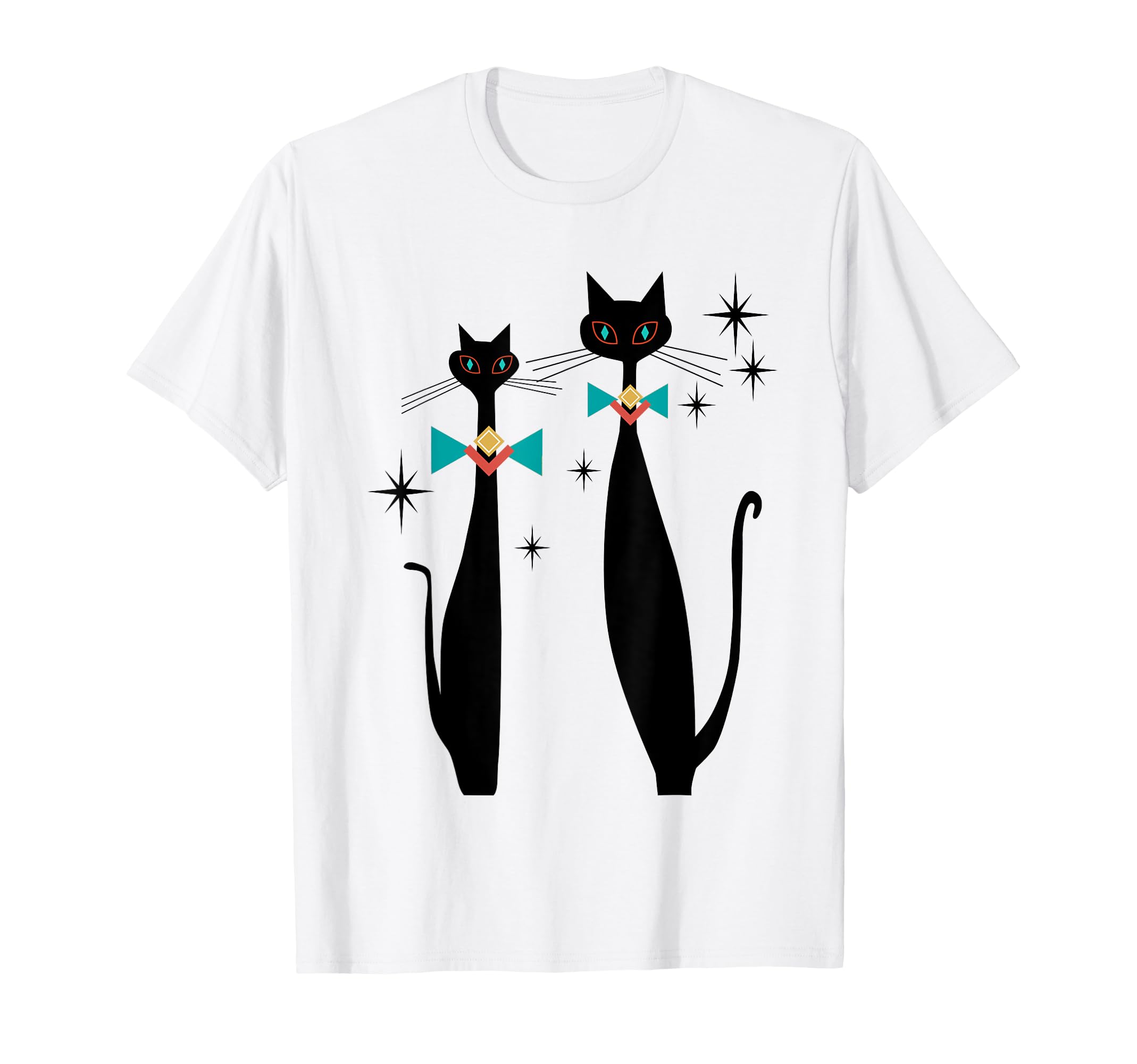 Retro Atomic Era Mid Century Modern Cool Cat Pair t-Shirt. Black cat, MCM, design. Great birthday, Christmas, or anytime gift idea. Or, treat yourself! Lightweight, Classic fit, Double-needle sleeve and bottom hem