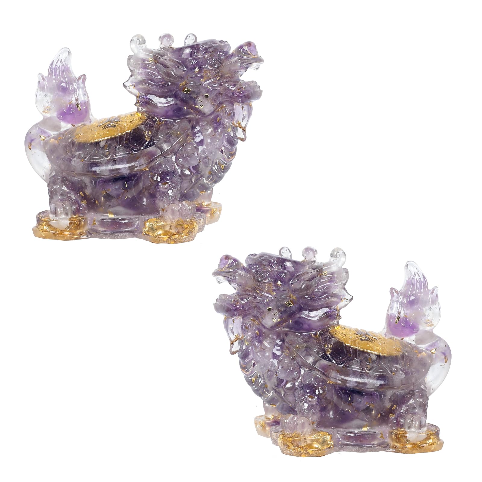 Healing Reiki Crystal Statue: Dragon tortoise is a very common Fengshui mascot, which has the role of town house, driving evil spirits and keeping peace. The dragon tortoise has a good meaning of success, wealth and development, and the dragon tortoise is also a kind of Feng Shui items with very powerful energy. Special Design of Crystal Dragon Turtle: Dragon turtle is the incarnation of the dragon god and the spirit turtle, is one of the ancient Chinese auspicious beasts, is a combination of turtle and dragon, the shape of the dragon head, dragon tail and turtle body, through resin handmade, filled with natural crystal. Perfect Size of Pocket Status: The total length of this dragon turtle status is 2.24-2.40 inches(57mm-61mm); Total width is 1.34-1.42 inches(34mm-36mm); Thickness is 1.65-1.77 inches(42mm-45mm); weights about 45-55 grams, easy to carry. As our products are made from hand-carved stone, each crystal dragon turtle may vary slightly in size, shape and grain, and you will receive a dragon tortoise that is uniquely yours.It can bring you good luck and wealth. Dragon turtle for Fengshui Decoration: Putting the dragon turtle at home can effectively help improve their own fortune, and the dragon turtle also has the role of wealth. It also can be placed to carry in your pocket, or on the bookshelf or desktop when a place adorn. It will bring you good luck and wealth, it can also play the role of improving wealth. Wonderful Gift Idea: Healing dragon turtle will have a gift wrap, which includes a gift bag and a gift box. This is a meaningful gift, which means you wish your relatives and friends can always be wealthy and good Luck and always accompany them. 2Pcs Handmade Pocket Crystal Dragon Turtles
