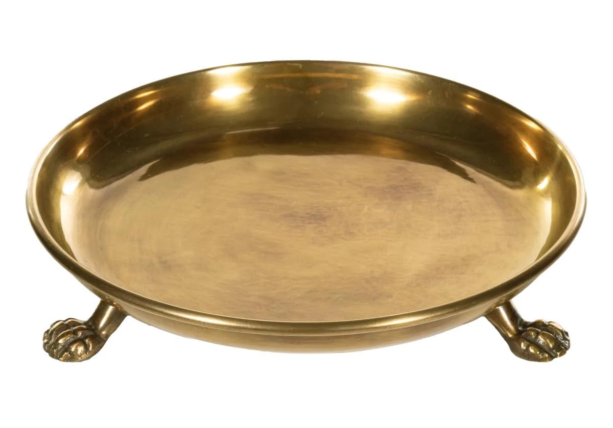 Liveable Luxury An Alice Lane favorite, this round clawfoot dish is an incredibly versatile must-have. Its luxurious gold finish is complemented by its small size and eye-catching legs for an irresistible design. Featuring a shallow holder, it effortlessly pairs with candles, soaps, or perfume, protecting surfaces while lending a chic, elevated look. Style as a catchall for keys and jewelry, or a stand for petite glass jars. Its brass tone adds a touch of refinement and glamour to a bathroom counter, vanity, dresser, coffee table, shelves, and built-ins.