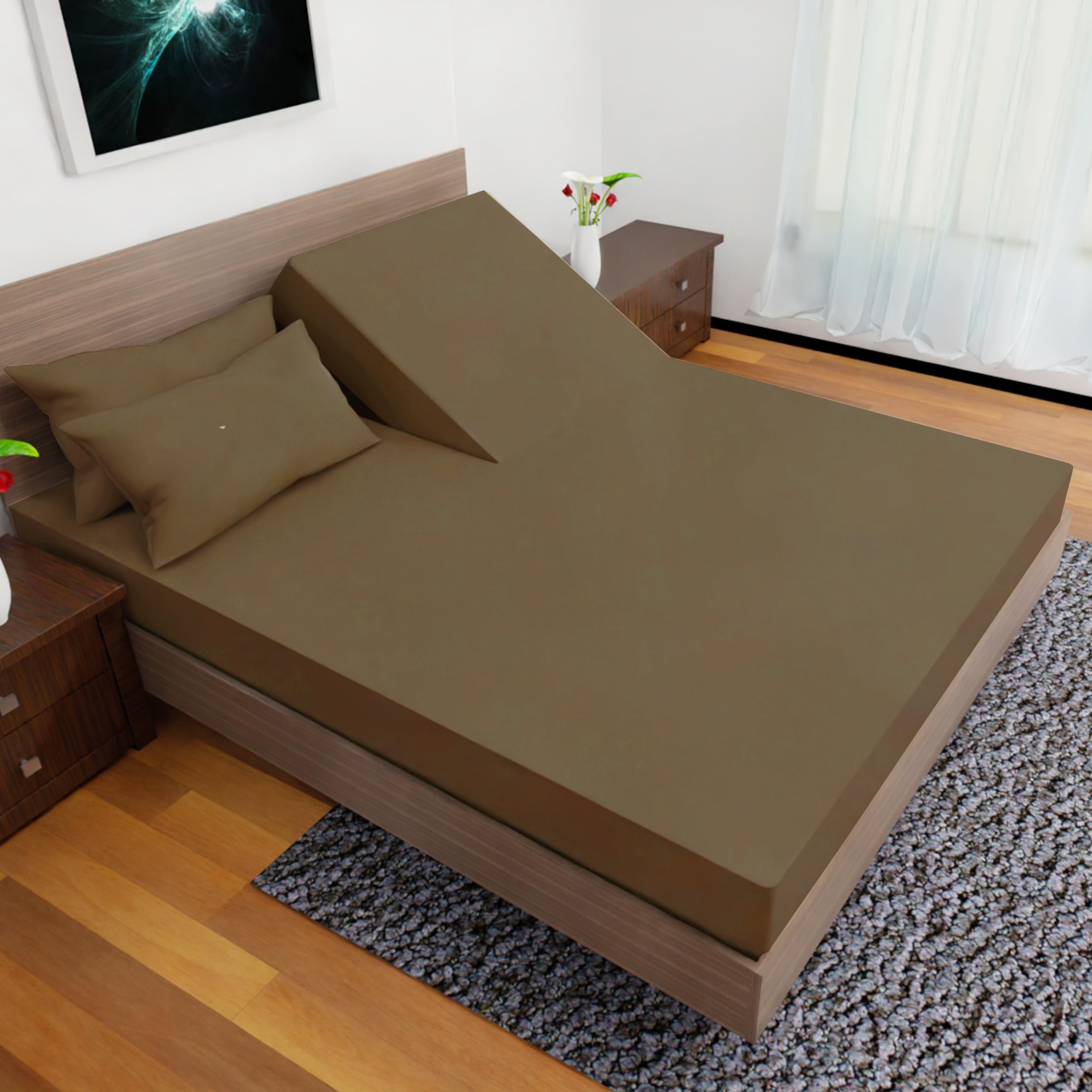 LUXURY SOFTNESS THAT LASTS – Drift into deep sleep on our ultra-soft, hydro-brushed fabric designed for year-round comfort. These split top king sheets for adjustable beds keep you cozy in winter, cool in summer, and add a touch of luxury to your bedroom style. PERFECT FIT FOR ADJUSTABLE BEDS – Tailored exclusively for Flex Top King and Split Head designs. Our fitted sheet features strong all-around elastic (not just in the corners) to stay securely in place, making it the best choice in king split top sheets for adjustable beds. COMPLETE 4-PIECE SET – Includes 1 King Flat Sheet (108" x 102"), 1 Split Head Flex Top Fitted Sheet (78" x 80" x 16"), and 2 King Pillowcases (20" x 40"). Extra-deep pockets fit mattresses up to 16", making these split head king sheets sets for adjustable beds truly versatile. NO MORE NIGHTLY SLIPS & SLIDES – Tired of sheets shifting out of place? Our split top king sheets sets for adjustable beds feature secure all-around elastic (not just in the corners) for a tight grip. Each side moves independently, so you and your partner sleep undisturbed all night long. WRINKLE FREE & DURABLE QUALITY – Built to last wash after wash, our flex top king sheets sets for adjustable beds resist wrinkles, shrinkage, pilling, and fading. Enjoy easy-care bedding that stays smooth, vibrant, and soft—no ironing or special treatment required. Experience the epitome of comfort with our Royal Bliss 1900 Top Split Flex Head Sheet Set. Crafted from Egyptian Quality, double-brushed microfiber, these ultra-soft bed sheets redefine luxury for your top split flex head bed. The 4-piece set includes a flat sheet, fitted sheet with deep pockets, and two pillowcases, providing a complete bedding solution. Our sheets are designed to effortlessly fit top split flex head mattresses, ensuring a snug and secure fit every time. The deep pockets accommodate mattresses of various thicknesses, making these sheets versatile and practical. The elegant Mocha color adds a touch of sophistication to your bedroom, creating a serene and inviting atmosphere