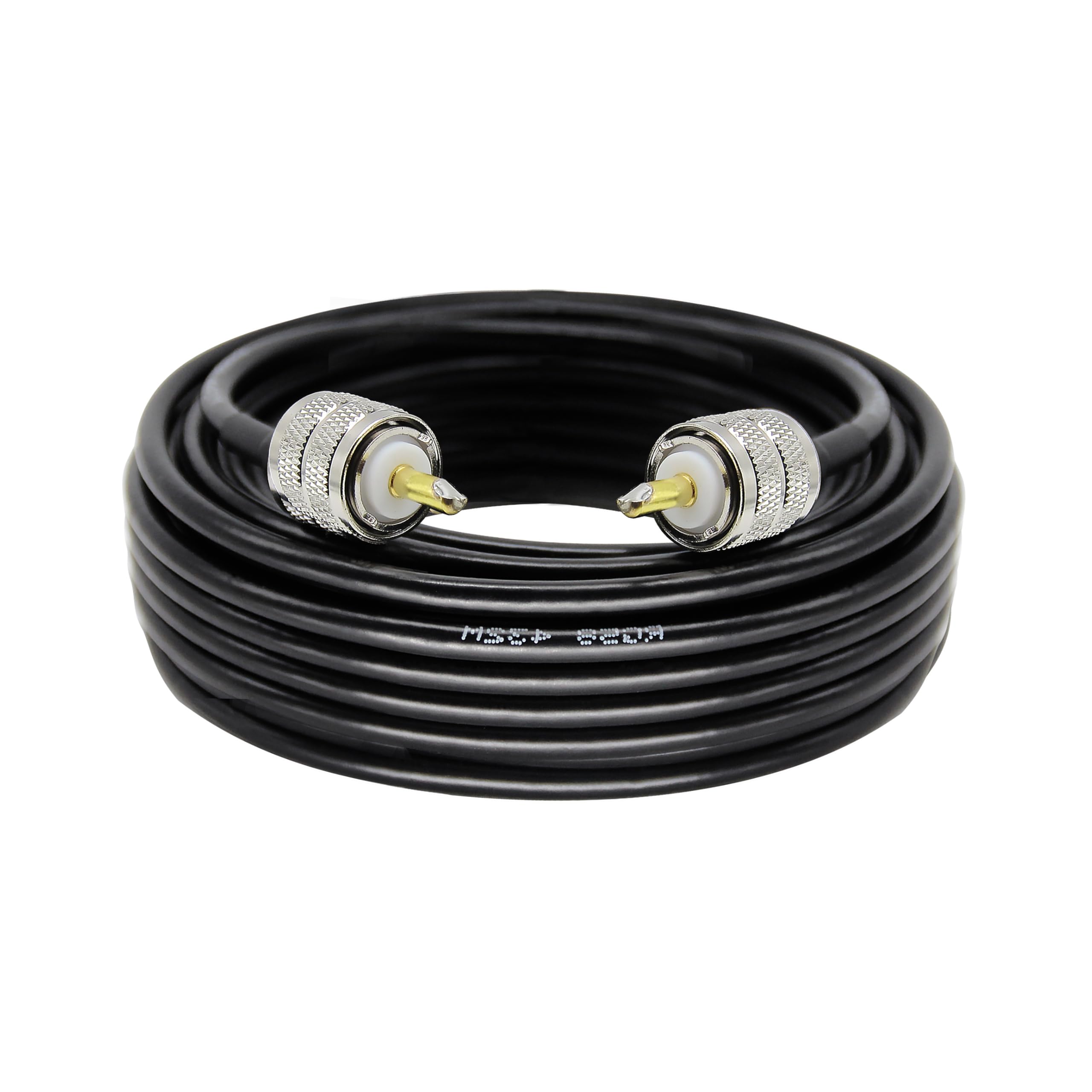 Copper Conductor: The CB antenna cable is made of 100% pure copper inner conductor, providing excellent electrical conductivity and signal transmission performance Double Shieding: The cb cable has 100% copper braid and aluminum foil layer as double shield constructure. It provides good protection for the cb cable against interference and signal loss. ensuring high quality and reliable communication PE Insulation and PVC Jacket: The cb radio coax cable is insulated with PE and coated with PVC for durability and protection against environmental factors. The PVC sheath provides additional protection against moisture, dust and other external elements Nickel Plated Connectors: The PL259 connectors are fully molded with nickel-plated brass for durability and corrosion resistance. The gold-plated center pins provide excellent corrosion resistance as well as secure and reliable connection with SO239 connector Flexible RF Cable: This cb radio antenna cable is flexible, easy unrolling for deployment. It is suitable for a wide range of HF/VHF/UFH applications, including Ham radio, CB radio, GMRS, FRS, scanner, antenna analyzer, SWR meter for cb radio antenna etc These are high-quality long co axial cables suitable for a wide range of applications, including portable handheld HF/VHF radio, ham radio antenna extender, police scanner, hf antennas for ham radio, antenna analyzer, dummy load, sdr receiver and more. The 50 ohm coax cable is compatible with yotenko-coaxial-adapter-amateur-two-way, new radios from ham radio outlet or ham radio 2.0 store, firestik cable, surecom sw-102, mcbazel-surecom-digital-125-525mhz-antenna and rigexpert antenna analyzer. The cb radio cable features pure copper inner conductor for enhanced signal transmission, pure copper braid and aluminum lay for double shielding and resistance to interference, PE insulation for durability and flexibility, PVC sheath for protection against moisture and corrosion, and fully molded nickel-plated brass UHF PL259 connectors with gold-plated center pin for secure and reliable connections. The ham radio coax cable is soldered clean and strong. The cb cable for antenna is 50ohm rated, making it ideal cb radio accessories for use with various HF/VHF equipment with standard female connector SO-239. The pl259 cable installation is quite simple. Simply screw the barrels to the SO239 connector. Now it's easy to extend an antenna for best reception. With its superior construction and performance, this rg 58 coaxial cable kit is alternative to steren lmr400 coaxial cable or rg8x coaxial cable. It is a reliable choice for any professional or hobbyist requiring a high-quality extension cable for their applications. Connector 1:PL259 Male, Connector 2: PL-259 Male, Jumper Wire : RG 58, Impedance: 50 Ohm. Package include: 1x rg58 cable 33 ft.