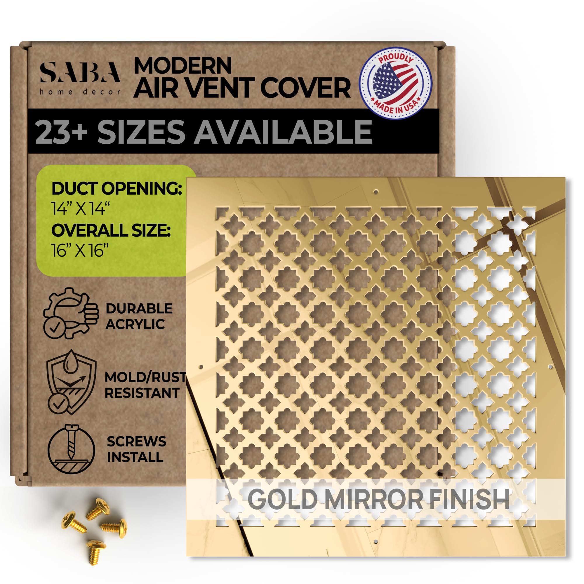 SABA Home Decor Air Vent Covers Register - Acrylic Fiberglass Grille 14" x 14" Duct Opening (16" x 16" Overall) Gold Mirror Finish Decorative Cover