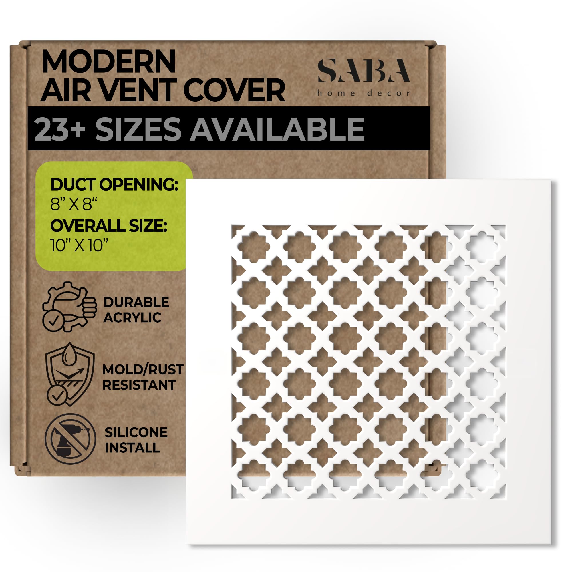 SABA Home Decor Air Vent Cover Grille - Acrylic Plexiglass 8 x 8 Duct Opening, 10 x 10 Overall White Finish Decorative Covers for Walls & Ceilings NOT
