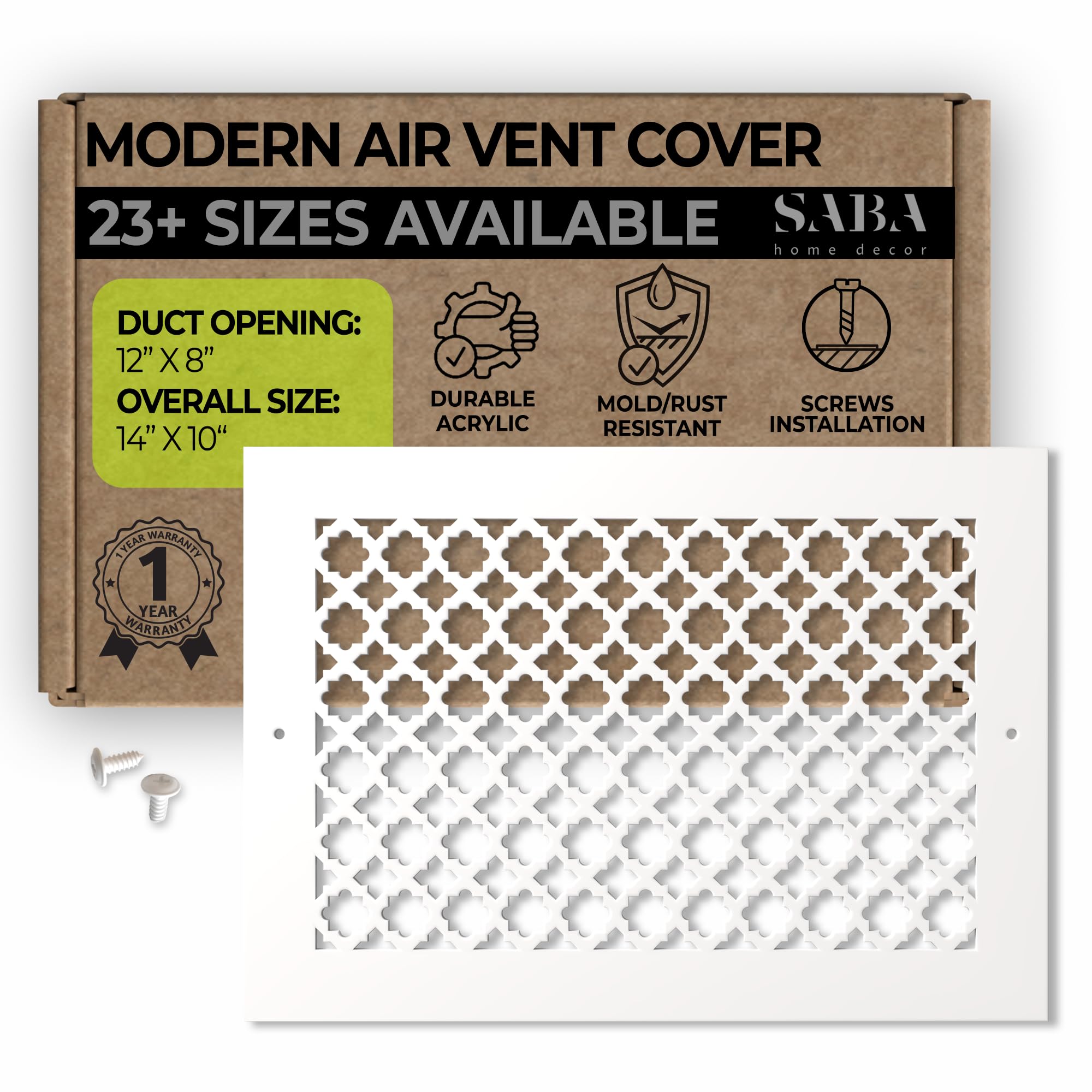 SABA Home Decor Air Vent Cover Grille - Acrylic Plexiglass 8 inch x 12 inch Duct Opening (10 inch x 14 inch Overall) White Finish Decorative Covers