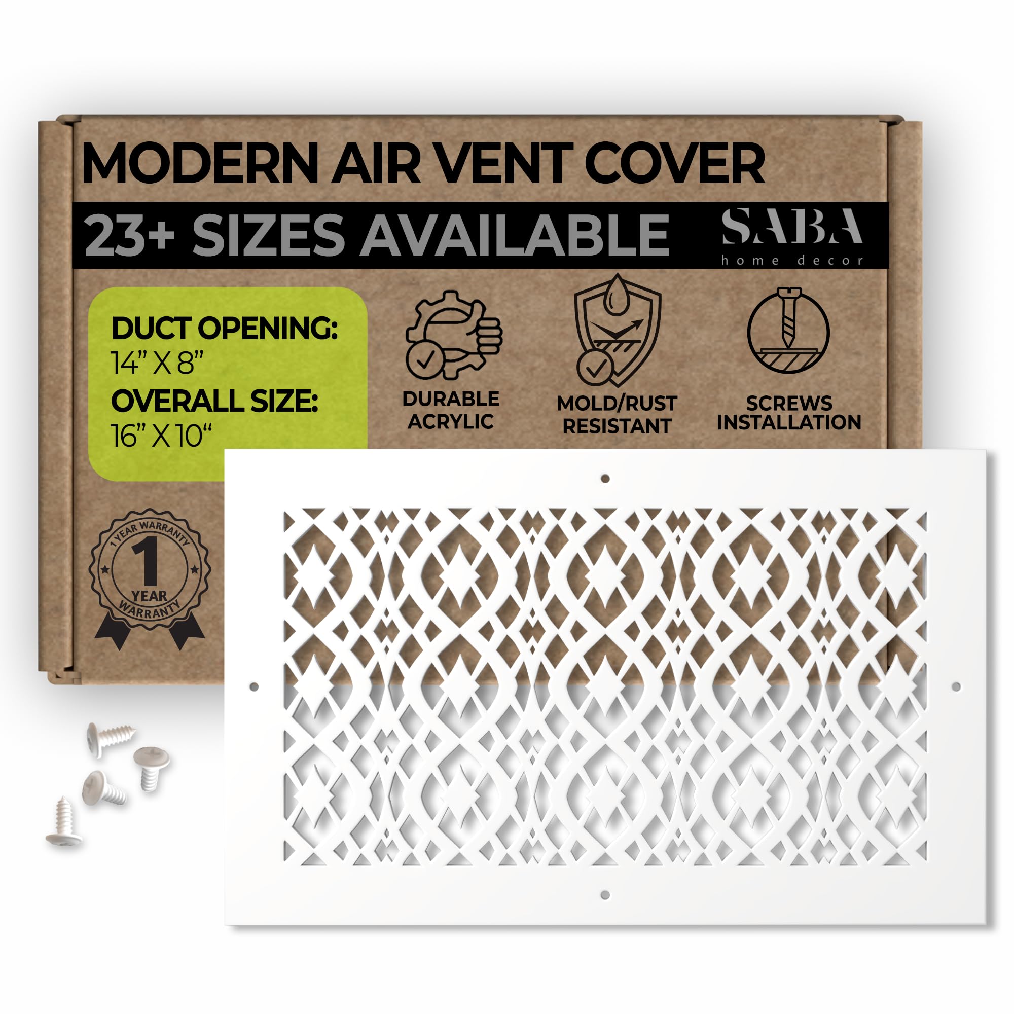 SABA Home Decor Air Vent Cover Grille - Acrylic Fiberglass 8" x 14" Duct Opening (10" x 16" Overall) Decorative Register Covers for Walls and Ceilings
