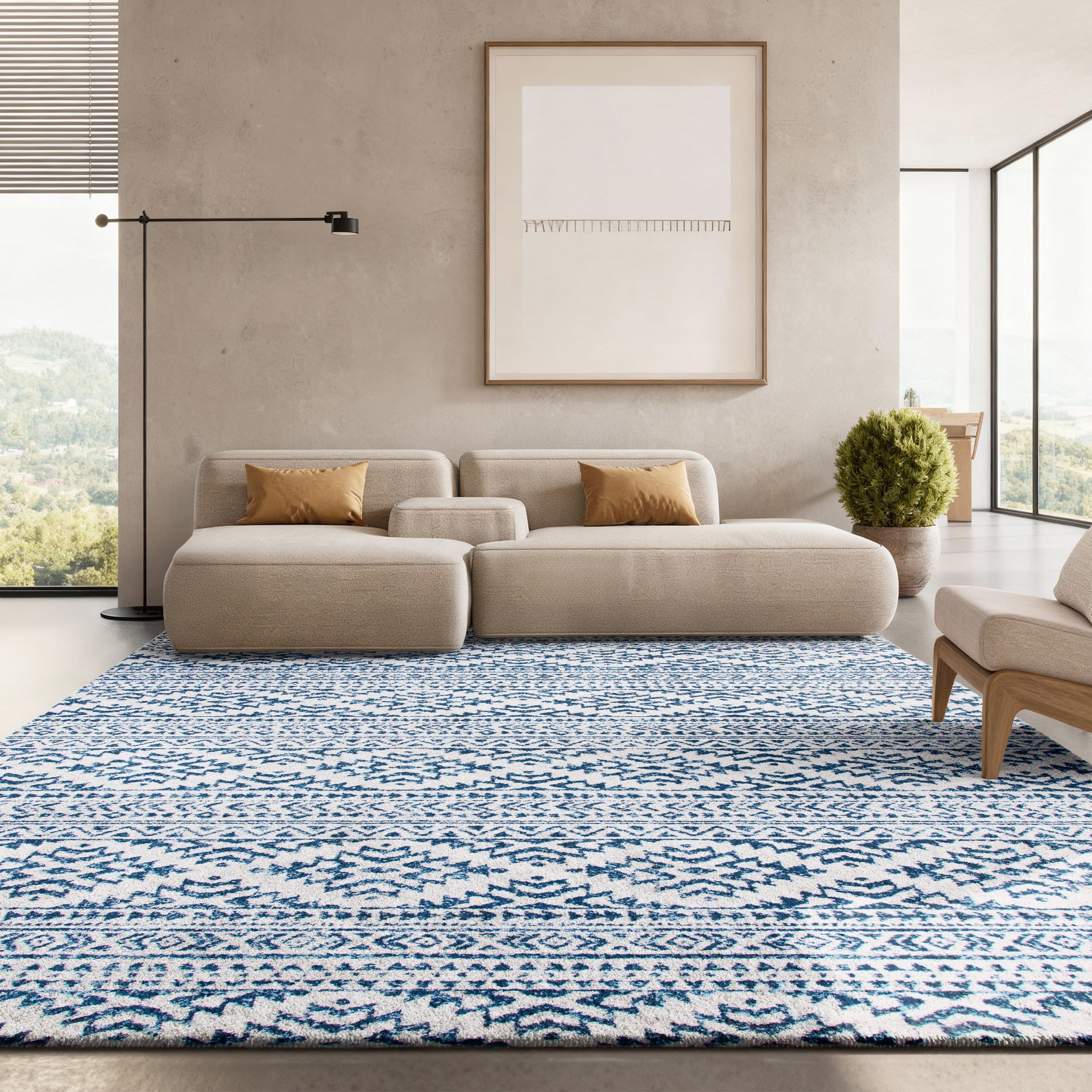 SAFAVIEH Area Rug 12x15 - Tulum Collection - Large - Ivory & Navy, Moroccan Boho Tribal Design, Non-Shedding & Easy to Clean, Ideal for Living Room,