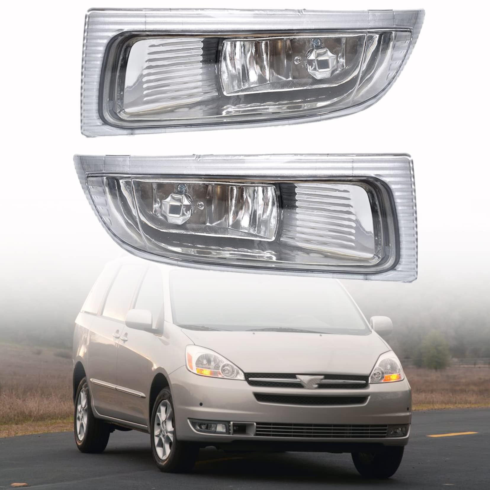Pack of 2 Clear Lens Fog Light Kit with Bulbs Left and Right Side Replacement for 2004-2005 Sienna TO2593118, TO2592118