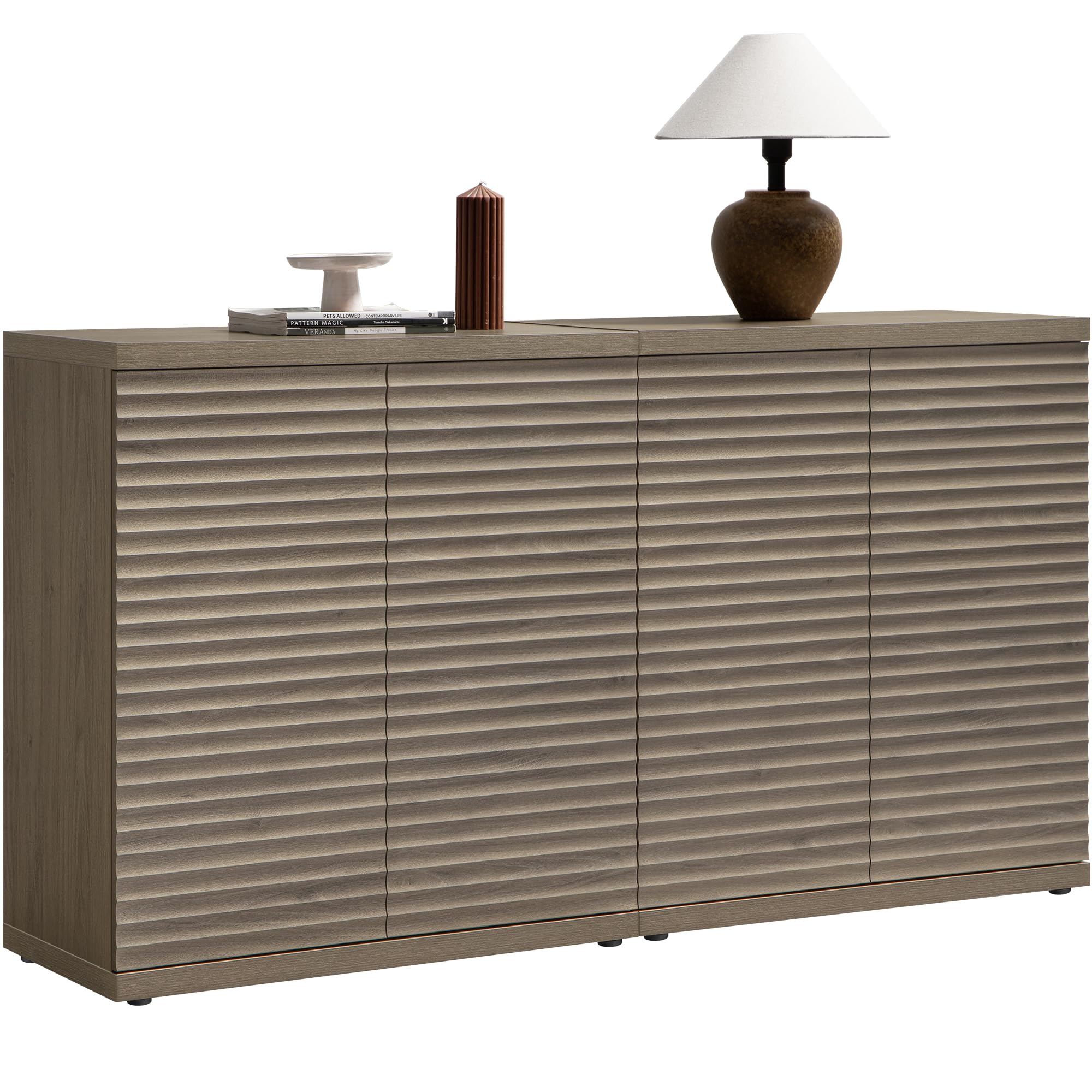 【Extraordinary Storage Space】- Overall dimensions: 15.6"D x 61.8"W x 34.1"H. This buffet cabinet offers significantly more storage space compared to standard models, making it perfect for storing your dining essentials, serving utensils, and decorative items. Its spacious interior provides ample room for organizing and tidying up your dining area or kitchen. Enjoy ample space for dishes, glassware, and more in this larger-than-average buffet cabinet. 【Minimalist & Practical】- The storage cabinet boasts a minimalist profile and doors with a unique waveform panel, setting it apart from ordinary furniture pieces. Equipped with pop-up design doors that offer easy access to stored items while maintaining a sleek and seamless appearance. This distinctive design adds a touch of sophistication and style to your living space, enhancing the overall aesthetic appeal of your home decor. 【Sturdy & Durable】- Crafted with a thickened high-quality board and scratch-proof, water-resistant surfaces, this buffet cabinet with storage is built to withstand the test of time. The frame is made of FsC-Certified engineered wood. Its sturdy construction ensures stability and durability, while the 2 adjustable storage shelves offer customizable organization for items of all shapes and sizes. You can rely on this sideboard cabinet to stay strong and intact, even with daily use. 【Versatile Functionality】- This accent buffet cabinet is adaptable to various rooms, serving as a serving station during meals, a display area for decorations, or a storage unit. Whether for your dining room, living room, entryway, or hallway, it functions as a sideboard, kitchen storage cabinet, TV console, or coffee bar, meeting diverse storage and display needs while enhancing the room's functionality and aesthetics. 【Easy to Assemble】- SICOTAS credenza comes with clear and detailed assembly instructions, making it easy to set up without any hassle. We are dedicated to providing you with professional customer service before and after your purchase. Please feel free to contact us with any questions you may have, and we will be more than happy to provide you with a satisfactory answer. 【Color Variation Notice】- Slight Color Variations May Occur Due To Material Batches, Manufacturing Processes, Or Display Settings. These Are Normal And Do Not Impact Quality. Thank You For Your Understanding. buffets & sideboards cabinets for storage with 6 doors kitchen storage cabinet credenzas for living room fluted accent side boards/buffets wood buffet table with storage dining room console cabinet