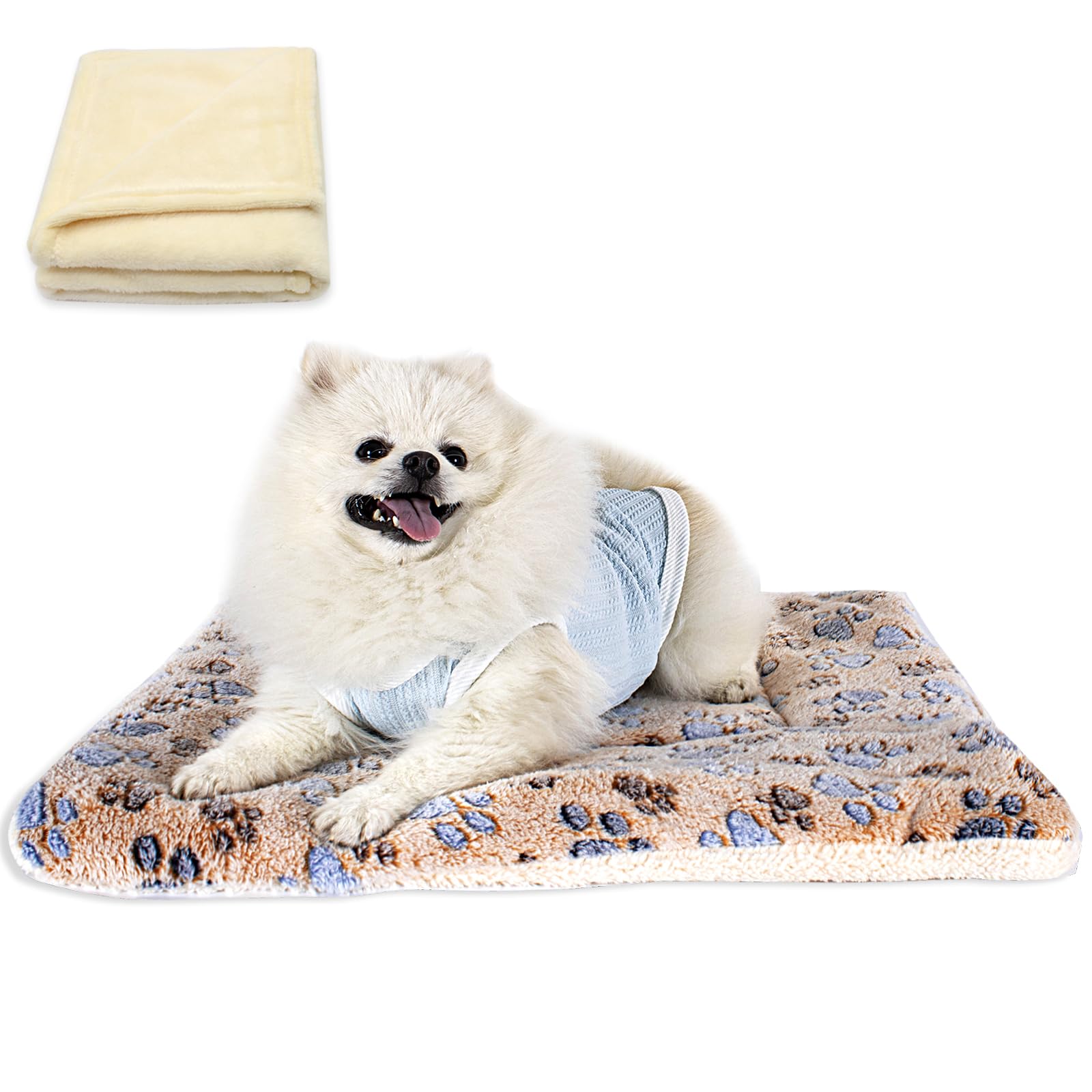 SM4BED Cat Dog Bed Mat & Blanket, Reversible Pets Crate Pad Bed Mat and Ultra Soft Warm Fleece Calming Blanket for Small Puppy Kitty, Washable