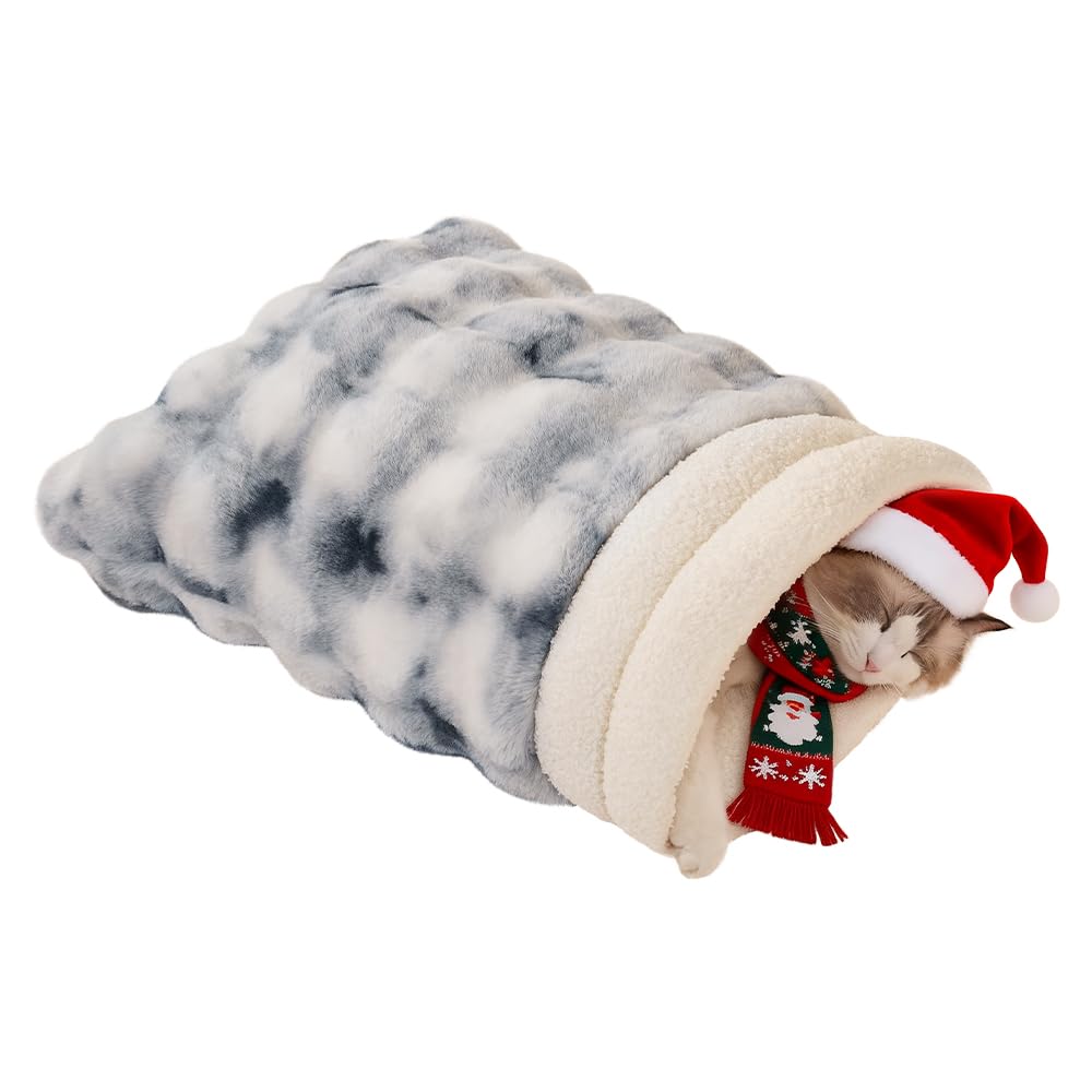 WARM ENCLOSED DESIGN. Our Cat Sleeping Bag features a semi-enclosed design that provides 360° warmth, keeping your pet cozy during chilly months. LUXURIOUS PLUSH MATERIAL. Cat bed is made from ultra-soft plush fabric, this sleeping bag ensures your cat or puppy stays comfortable and snug all season long. SPACIOUS & EASY ACCESS. 21 x 17 inches, this cat sleeping bag is spacious for small pets (up to 15 lbs) with easy entry and exit, allowing them freedom while enjoying warmth. STYLISH & PORTABLE. Our cute cat bed has chic beige and white-blue mix, this lightweight bag fits seamlessly into any home decor and is perfect for use on couches, beds, or in the car. IDEAL FOR ALL SMALL PETS. Perfect for cats, puppies, and rabbits, this sleeping bag makes a thoughtful gift for any pet lover, providing a safe retreat for play and nap time. Enhance your holiday décor with our stylish and durable Christmas throw pillow covers made from soft Dutch velvet and cozy faux fur. Featuring classic designs, choose between the charming Red-Tree motif and a timeless rhombic pattern. These pillow covers add a touch of elegance to your festive decor while providing comfort and warmth.