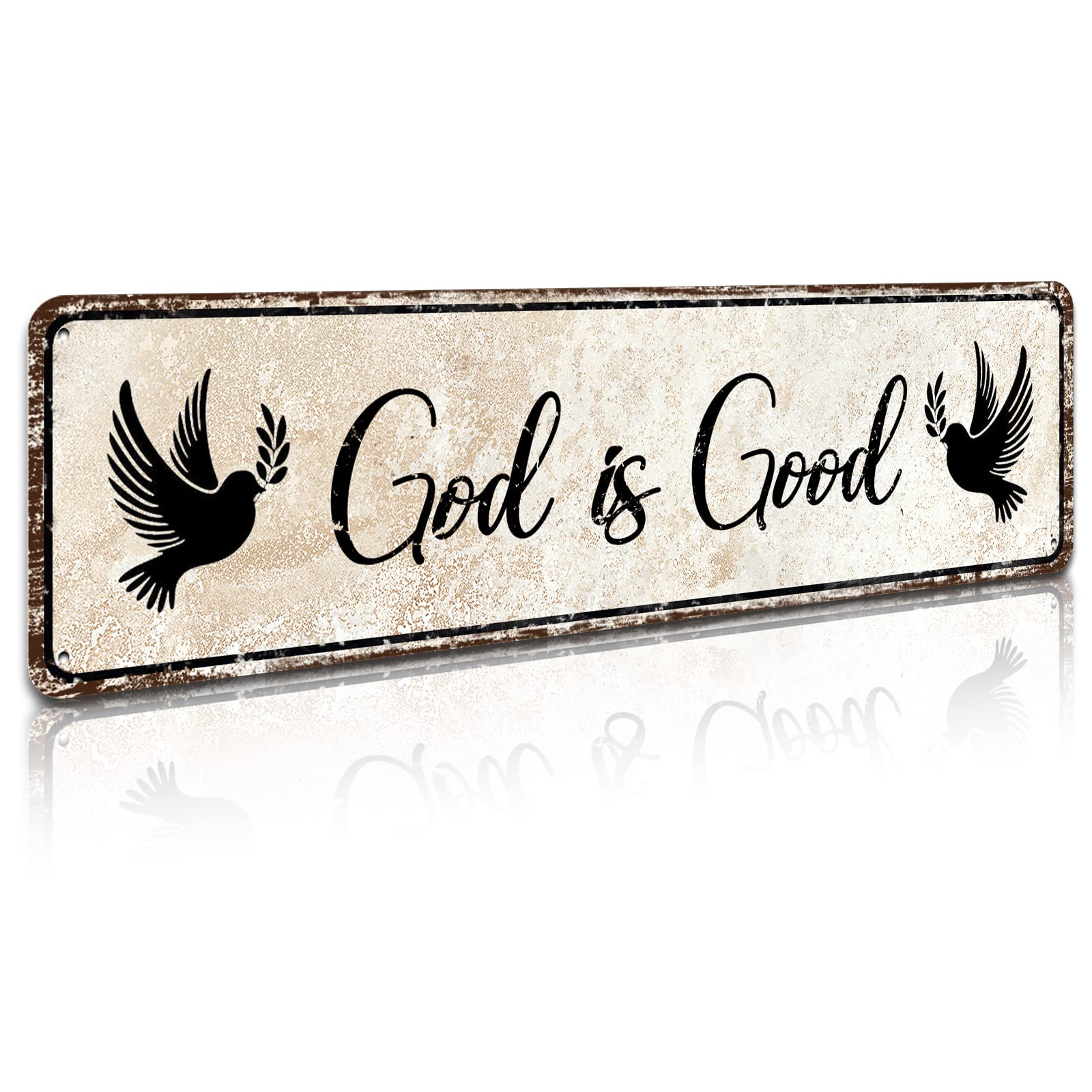 SOYAVE Christian Prayer Sign - God is Good - Farmhouse Rustic Wall Art Decor Home Office Decoration 4" by 16"