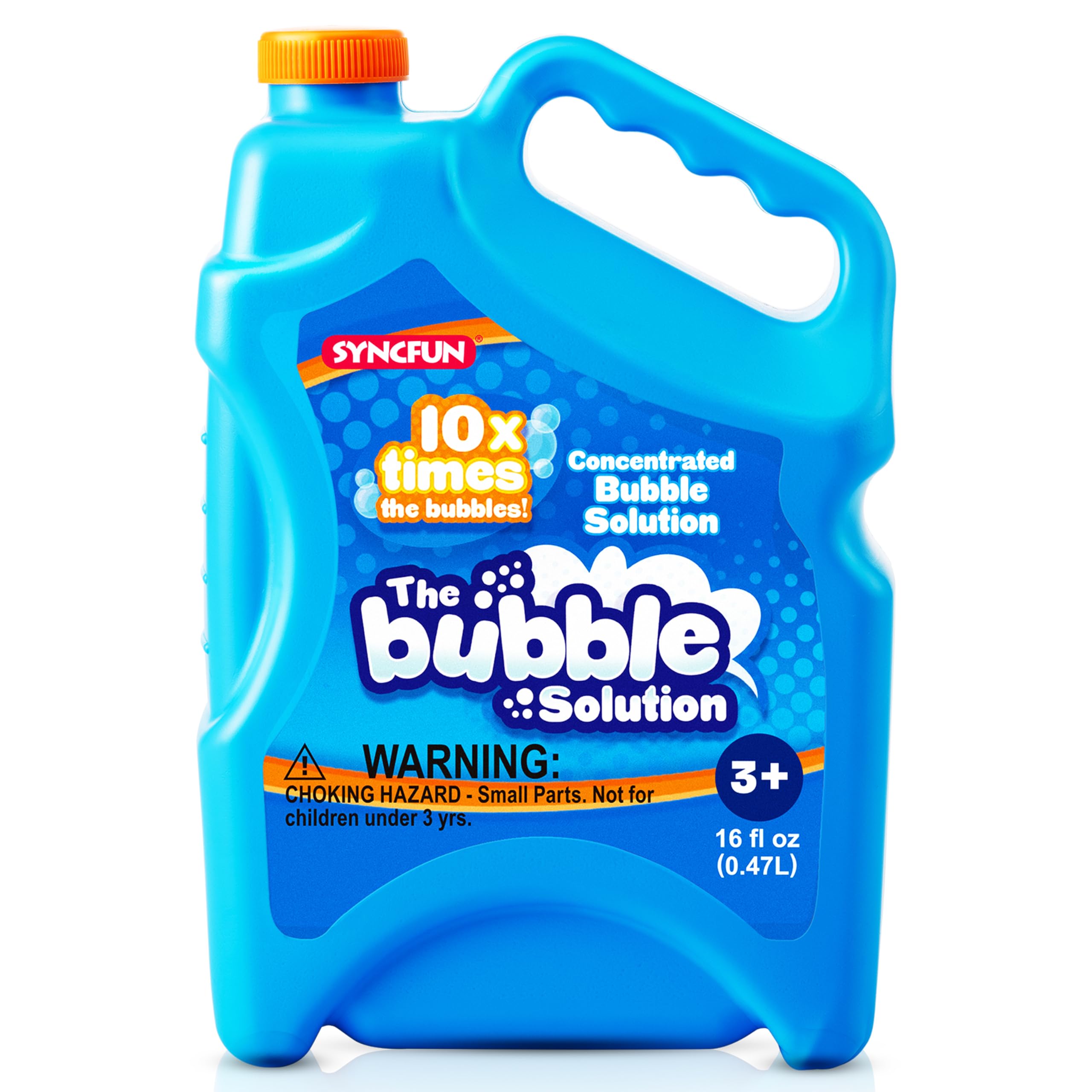 SUPER VALUE: 16 oz of concentrated bubble solution makes up to 1.25 gallons Regular Bubble Solution Refill , ensuring hours of bubble-filled fun. OUTDOOR USE for Kids Bubble Toys.This bubble refill is 16 oz(comparatively mini), please look carefully at the picture for the actual size. COMPATIBLE WITH ALL BUBBLE TOYS: Works seamlessly with bubble wands, bubble machines, bubble mower, and bubble guns for versatile enjoyment. Easy to Use. Easy Attach. EASY TO USE AND LONG-LASTING: Simply mix the bubble solution with water to prepare your bubble mix in seconds. Produces vibrant, long-lasting bubbles perfect for bubble and events. PERFECT FOR EVENTS AND PARTIES: Enhance celebrations with dazzling bubbles at birthdays, picnics, or backyard gatherings. Lightweight 16 oz bubble bottle is easy to store and carry, making it great for outdoor fun. NON TOXIC, SAFE FOR CHILDREN: Our Bubble Solution is made with child-friendly ingredients for indoors or outdoors. SYNCFUN 16 oz Bubble Solution Refills(up to 1.25 Gallons), Concentrated Solution for Bubble Machine, Wands, Blower, Easter, Outdoors Activity