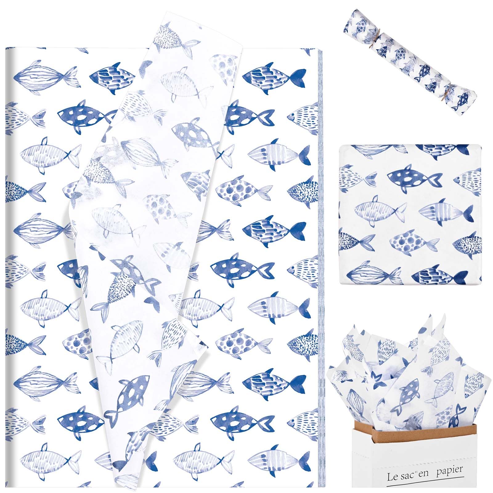 【Package Includes】You will recieve 100 sheets fish wrapping tissue paper, enough sheets to meet your holiday and daily gift wrapping needs. 【Watercolor Fish Design】Our tissue paper is designed with blue watercolor fish, delicate and adorable, perfect for adding joyful fishing atmosphere. 【Suitable Size】These tissue papers are 35 x 50cm/13.8 x 19.7inch in size, which fits most regular size gifts, or you can freely cut them to the proper size at will. 【Quality Material】The tissue paper is made of good quality paper material,hard to tear off,easy to fold and cut.The pattern is clear and eye-catching, a good choice for your fishing party decoration. 【Wide Application】Can be used as gift packaging, gift bag filler, bouquet packaging, wine bottle packaging, DIY handicrafts, etc. Ideal for many occasions, such as fishing party, ocean party, baby shower, summer party and more. Bring the beauty of the ocean to your gift-wrapping with these 100 pieces of fish-themed wrapping paper. The vibrant blue hues and delightful sea creature designs create a captivating visual that's perfect for winter holidays or any DIY craft project. Wrap presents, line gift boxes, or use as a decorative accent to add a touch of marine charm. With 100 sheets, you'll have plenty to work with for all your wrapping needs. Elevate your gift-giving game with this unique and eye-catching wrapping paper set.