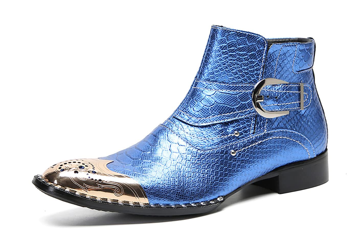 Premium Materials: Men's dress Chelsea boots are made of high quality cowhide leather with soft upper and sturdy rubber soles, durable and comfortable, breathable and luxurious look. High-Quality Craft:These mens casual dress cowboy boots are exquisite craftsmanship, pure hand sewing, smooth lines, seiko fine work, set off your noble and elegant temperament. Occasion: Mens western dress ankle boots are perfect for all kinds of your important event. Wedding, party, birthday, carnival, graduation, stage, travel, dance, prom, etc. Make them a show stopper with a WOW factor! Comfort & Durability: Goodyear Welted Construction process makes these dress boots highly durable and experience the comfort of durable rubber soles and luxurious pigskin liner.The leather insoles are covered with a thin layer of breathable leather to ensure effective moisture absorption and breathability. Style: Delicate snakeskin texture, metal square-toe design, high-end British style, with a belt buckle, with an inside zipper, so you don't have to deal with the hassle of laces, with the benefit of a zipper!