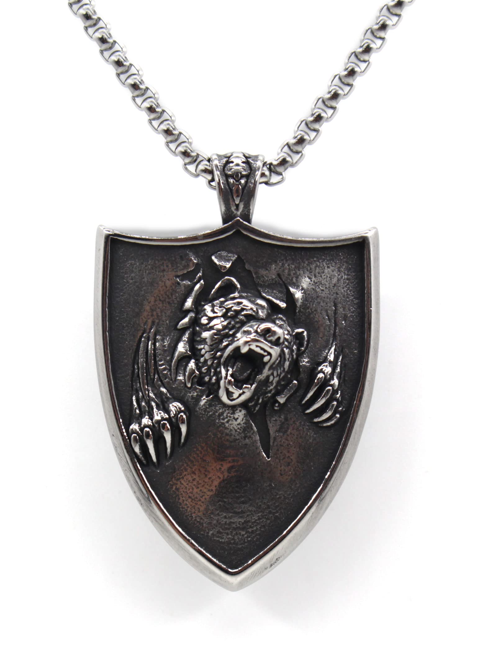 Scddboy Norse Bear Claw Amulet Necklace for Men,Eagle Wolf Head Pendant Necklace with 22+2" Stainless Steel Chain